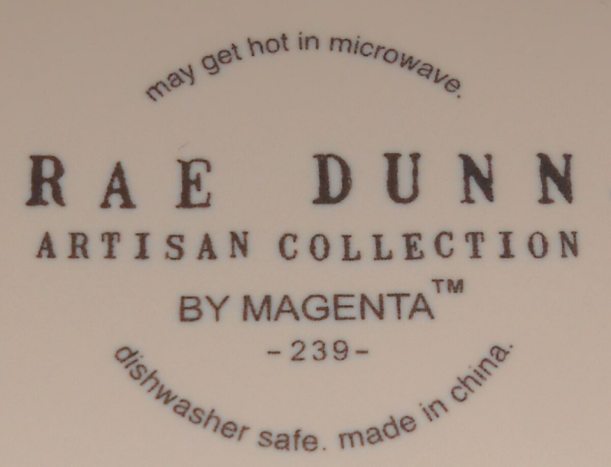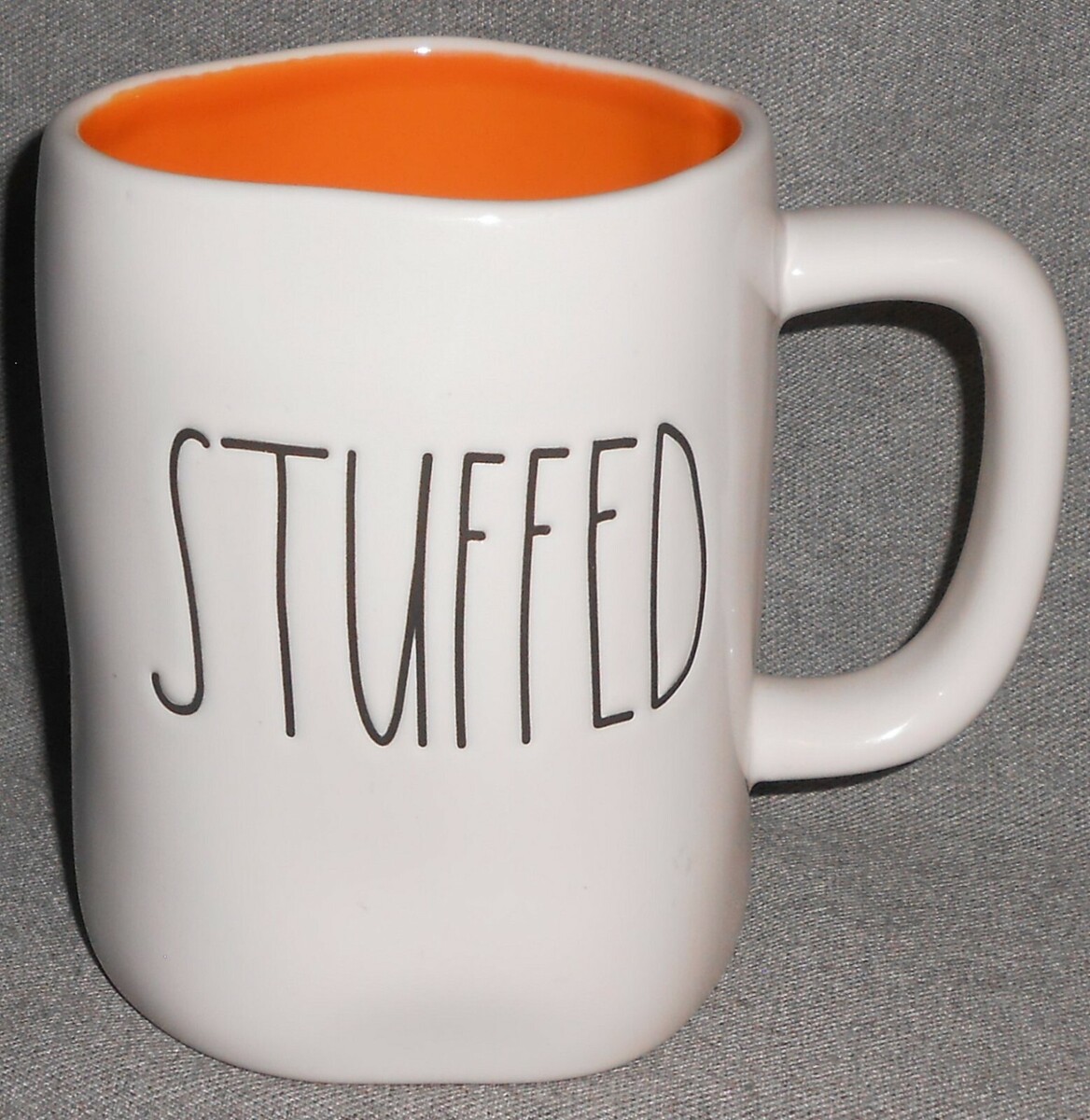 This is the Rae Dunn "STUFFED" Handled Mug that holds approx. 18 oz. and measures approx. 4 5/8" tall in the Artisan Collection by Magenta. It is in good pre-owned condition with no chips or cracks. It is dishwasher safe but has warning that it may get hot in microwave.