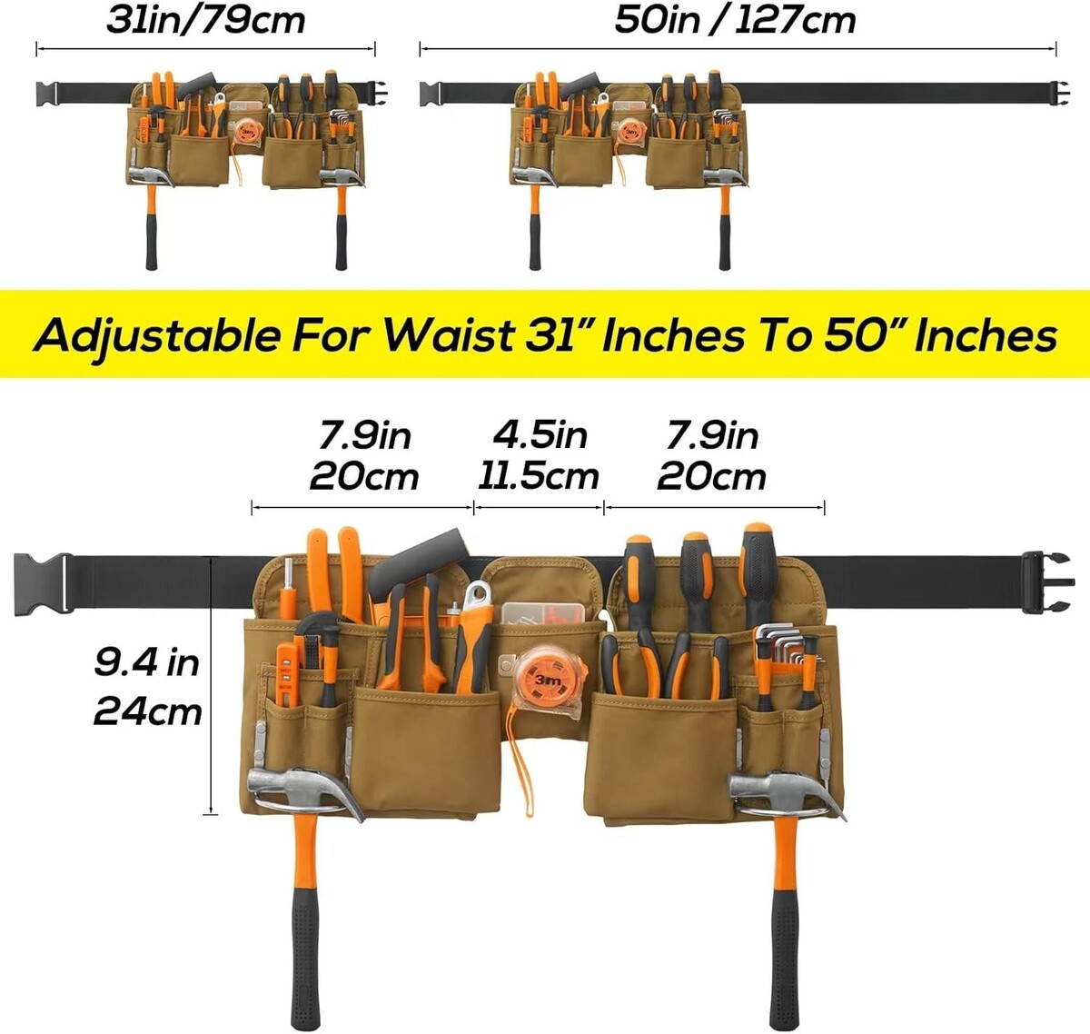 19 Pocket Adjustable Tool Belt with Quick Release Buckle for Professionals