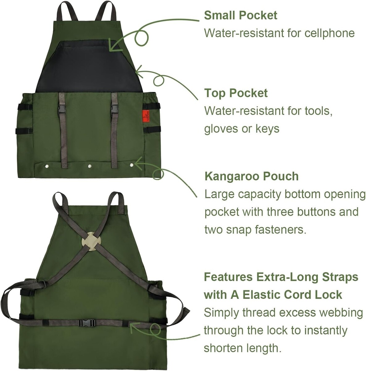Stylish Green Gardening Apron - Durable, Adjustable, and Machine Washable