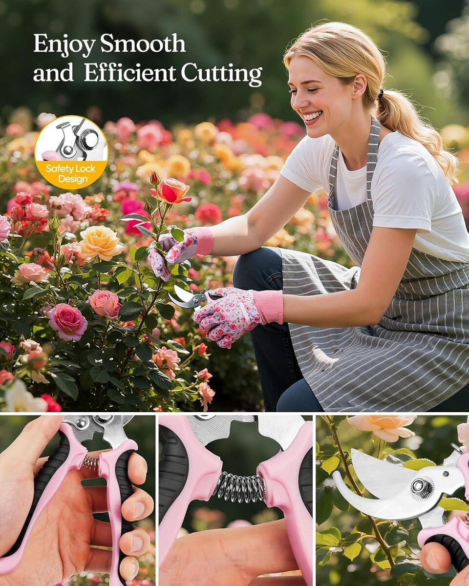 Elegant 12-Piece Gardening Tools Set, Rust-Proof Ergonomic, Pink Floral Design