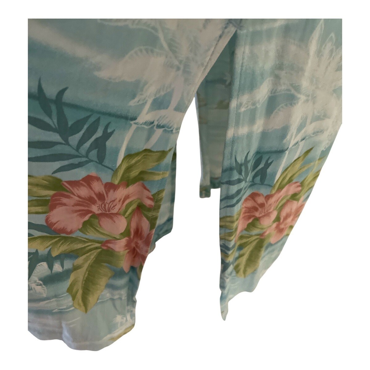 Easy island style in a classic Hawaiian silhouette. This Tahiti Reef Club sleeveless maxi dress features a serene blue ocean background with pink hibiscus florals, palm trees, and island scenery throughout. Lightweight 100% rayon with a relaxed drape and generous 16 inch side slits for movement and airflow. Perfect for beach vacations, cruises, summer events, or casual resort wear.
