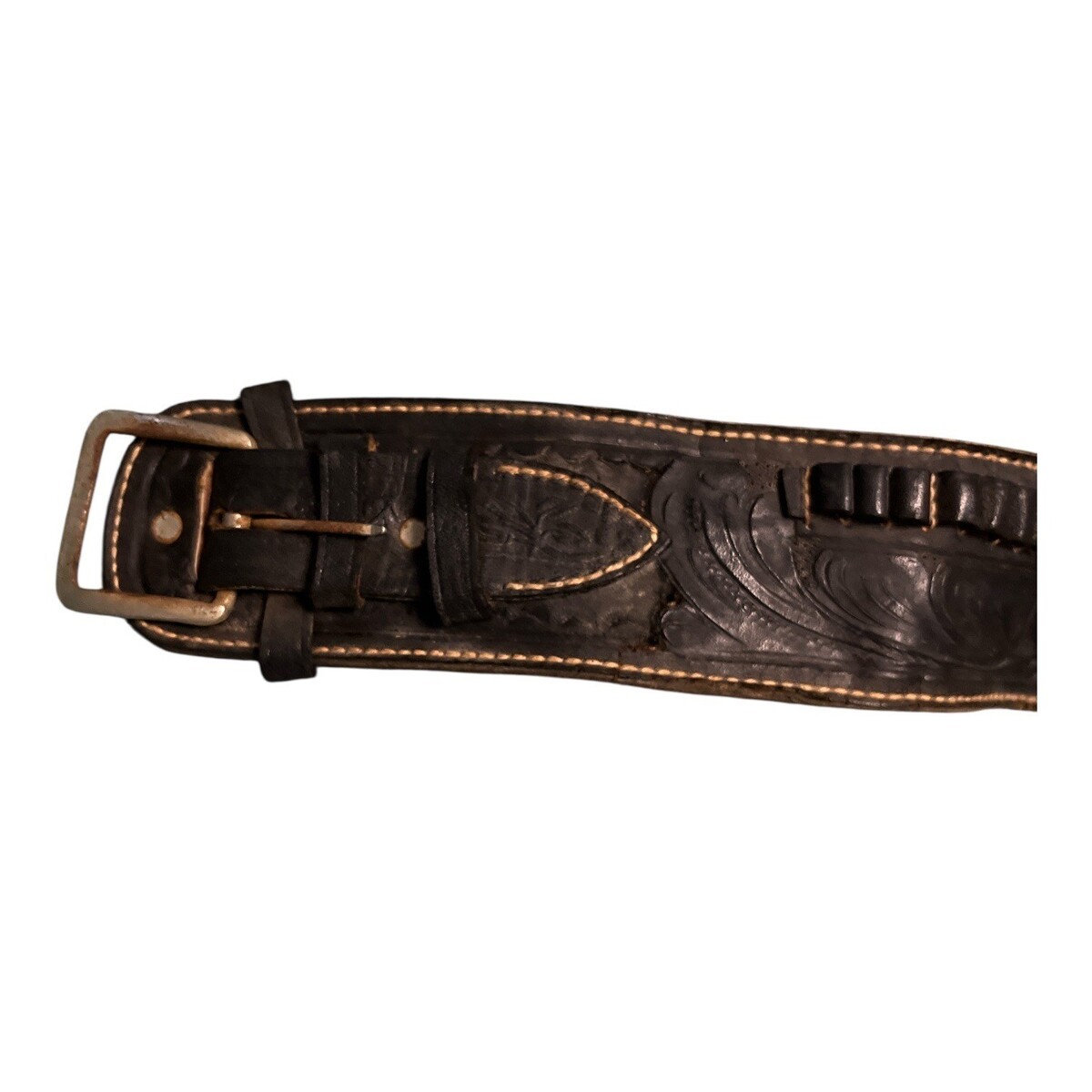 Vintage Tooled Leather Western Gun Belt Holster Rig 34 Inch Cartridge Belt