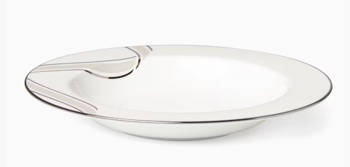 Kate Spade Lacey Drive Pasta Rim Soup Bowl 9" Platinum Ribbon Trim Lenox USA New