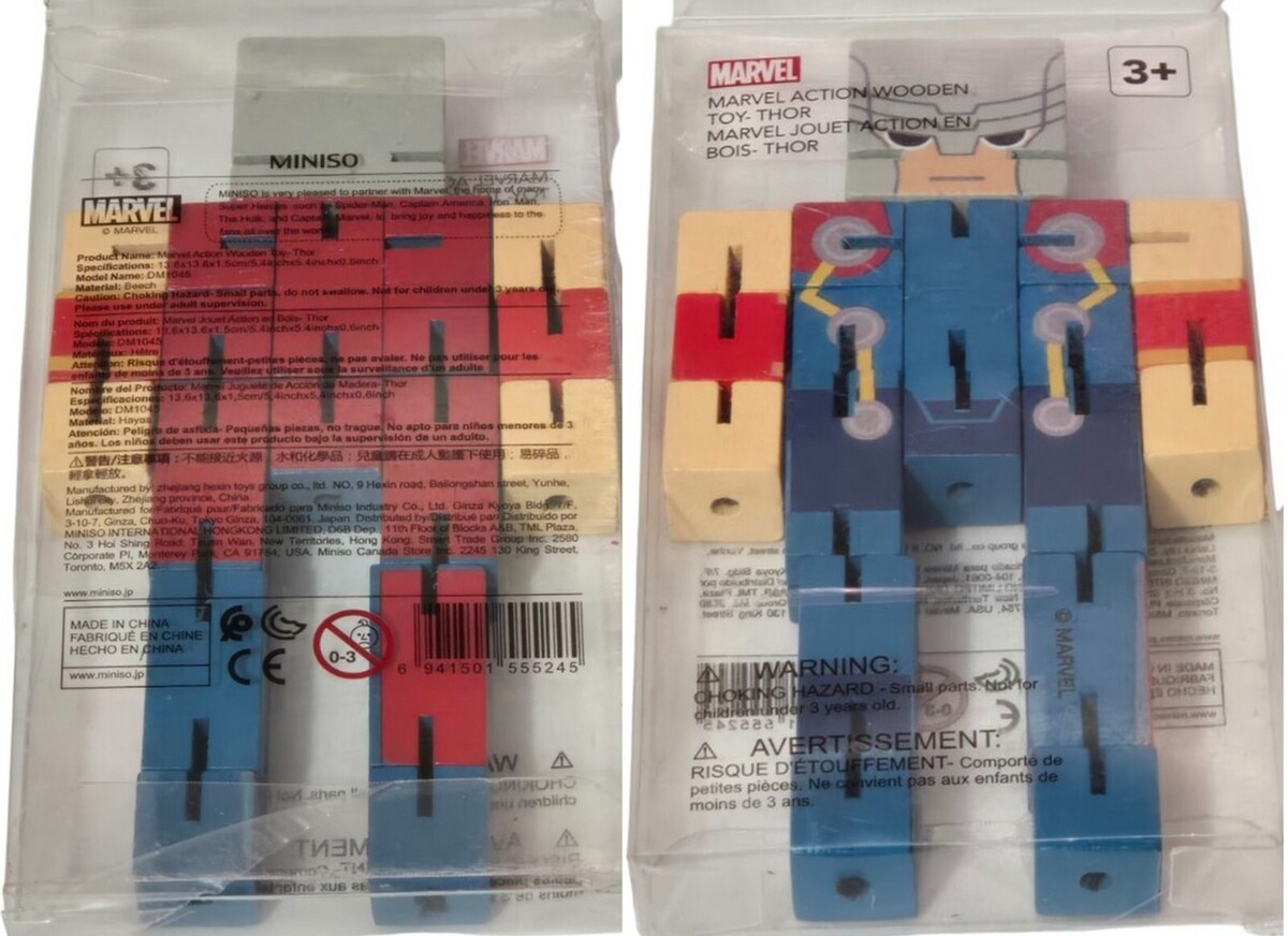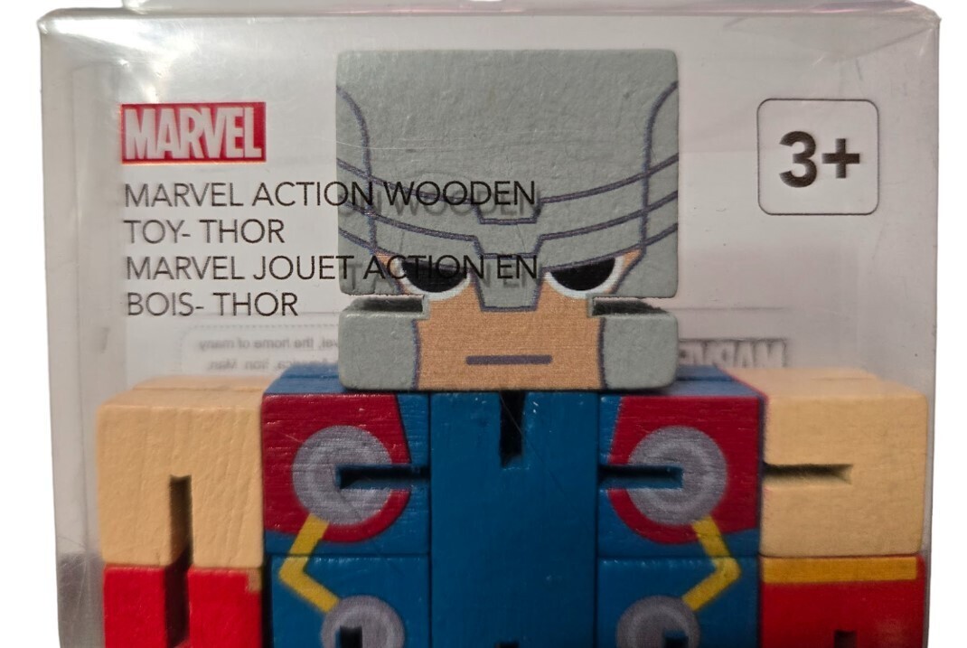 Miniso Marvel Thor Wooden Action Figure Toy Wood Block Poseable Collectible New