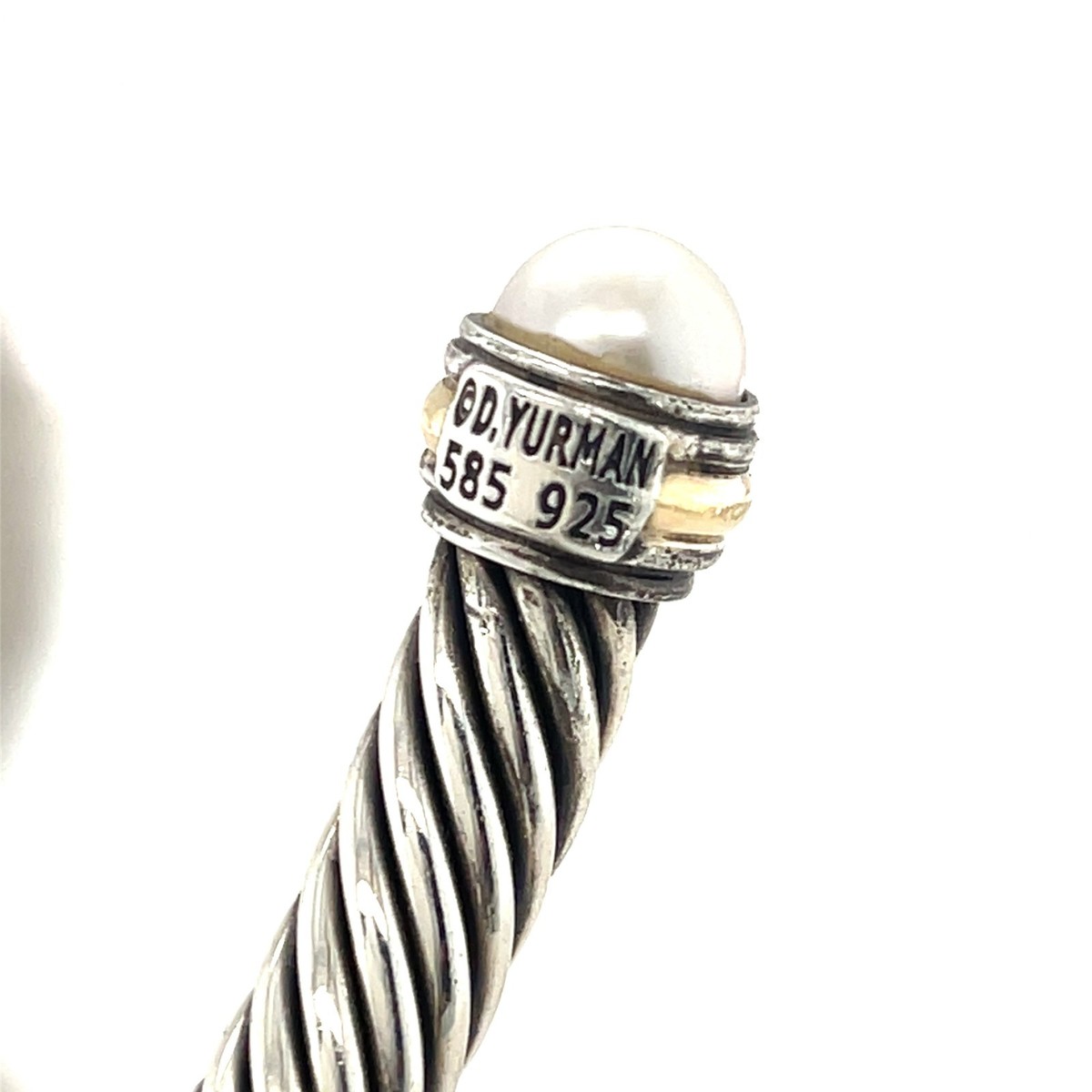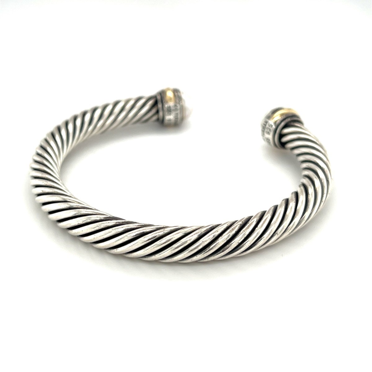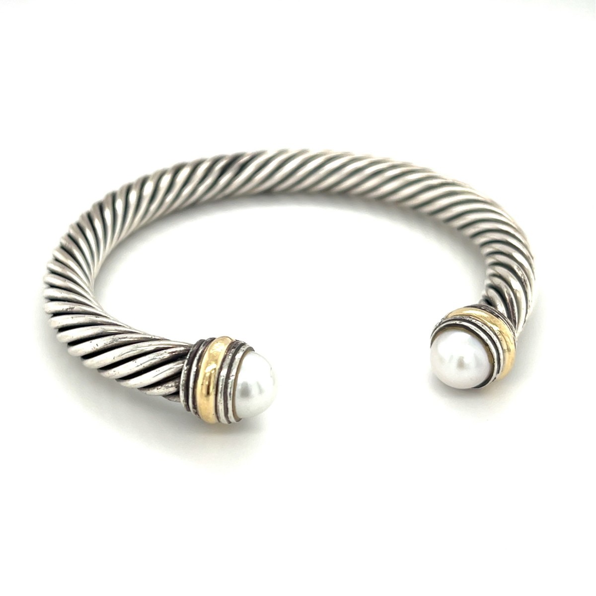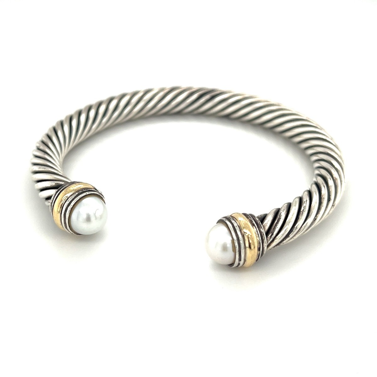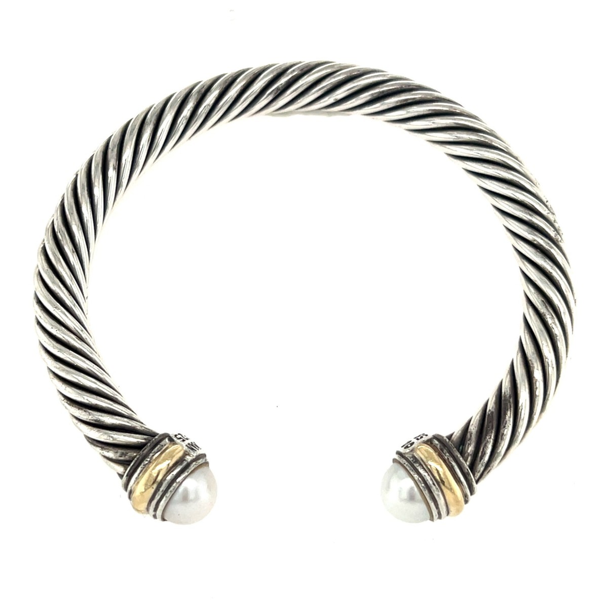 David Yurman Sterling Silver 14k Yellow Gold Pearl Classic Cable Cuff Bracelet
