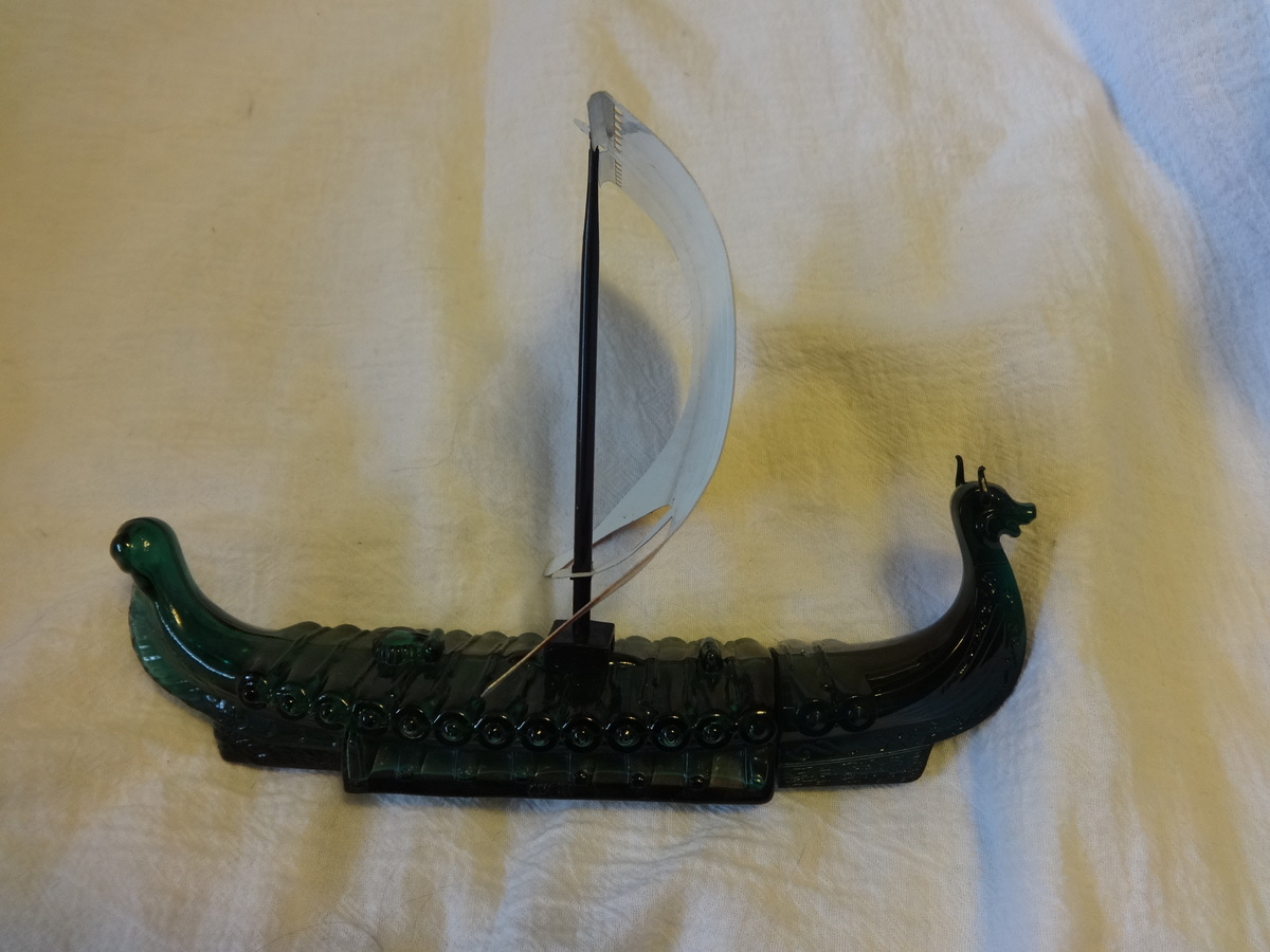 Bottle shaped like a Viking ship is EMPTY, though it once held Wild Country cologne. The metal sail is removable. Near mint condition.