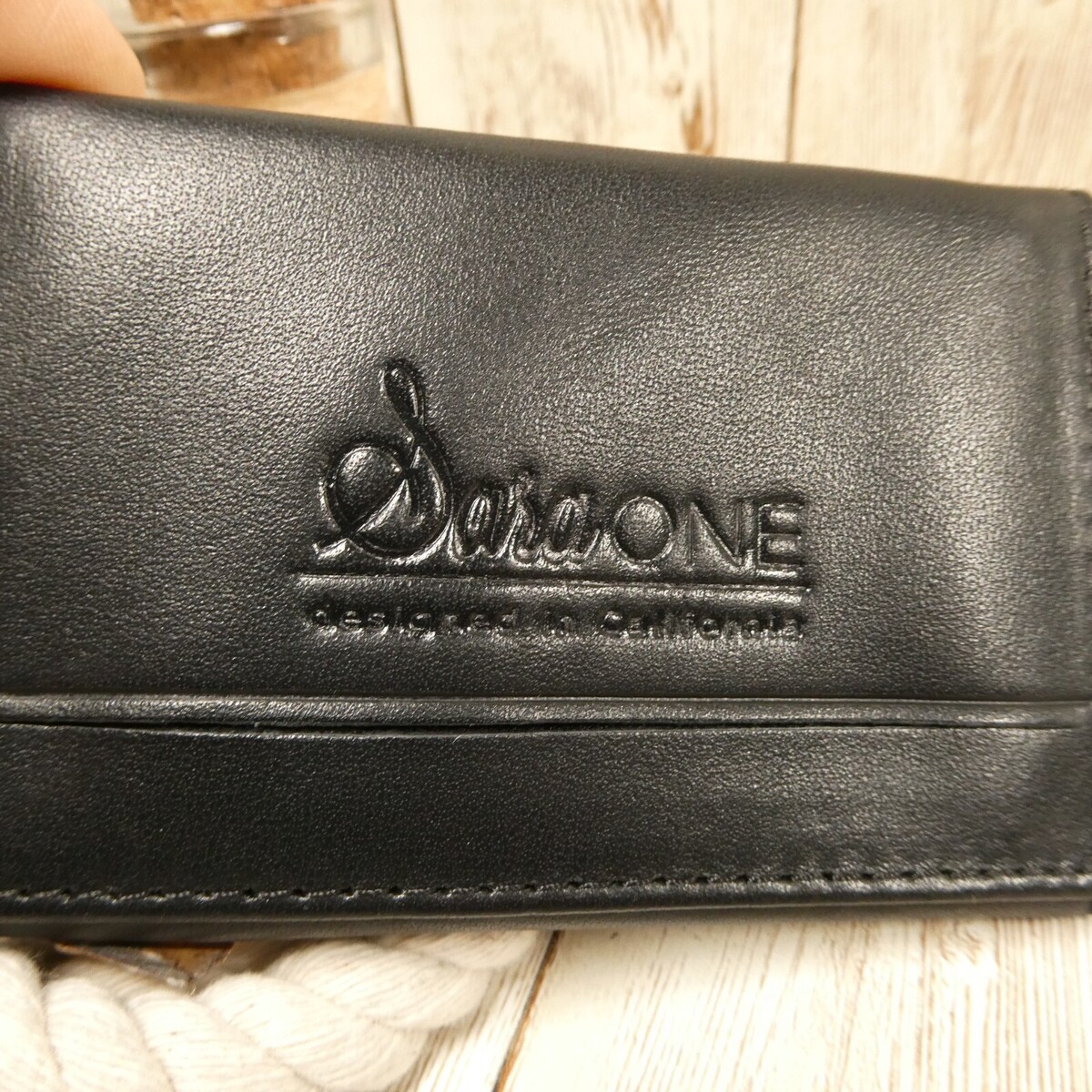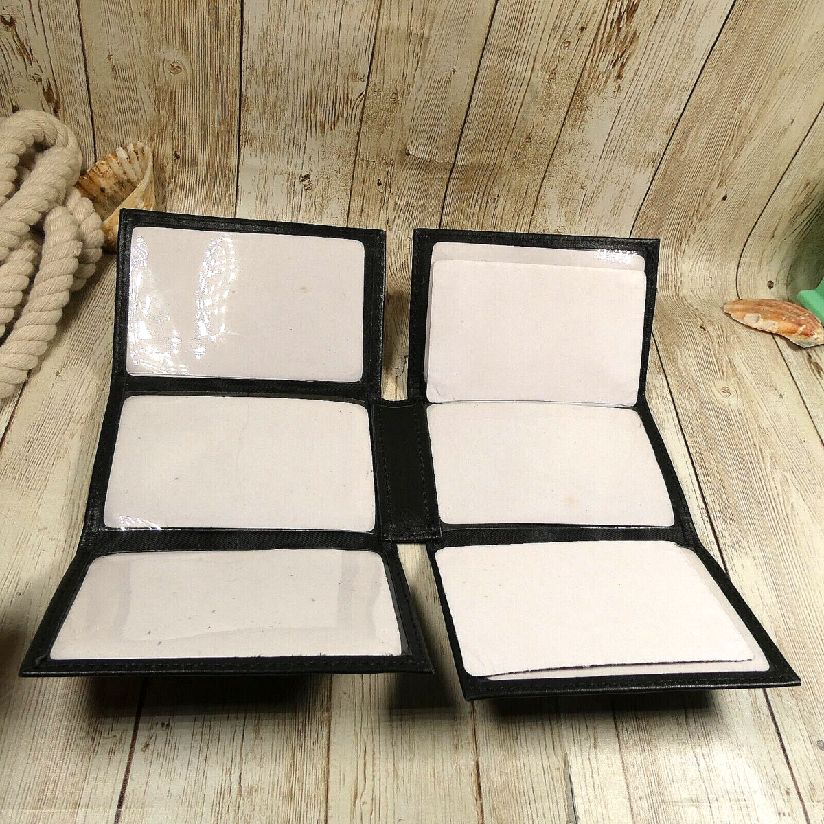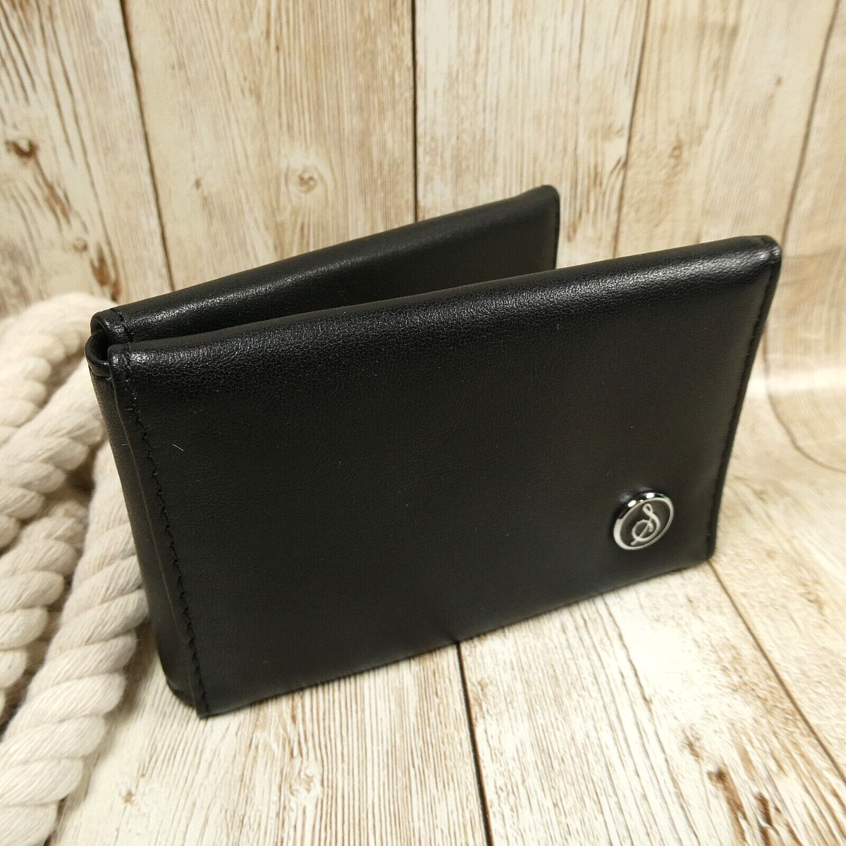 Sara One Small Black Faux Leather Multi-Fold Wallet Business Cardholder EUC