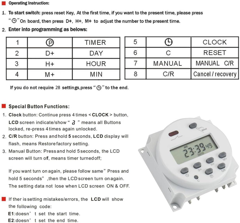 Time Switch Relay,Digital LCD Programmable Timer,12V DC/AC Input,200-250V 16A Output