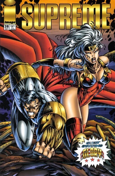 *Supreme is the brainchild of Rob Liefeld (Youngblood, Cable, The New Mutants, etc.). Supreme is?well?the closest thing to a supreme being as you can get in the Image universe. Measuring a ?Level 10? on the powers scale, he has a history dating back fifty years on Earth, and is just now returning to see what has happened since he left. Supreme is a man of unbelievable power, and more than a few flaws. Returning to Earth after 50 years away, Supreme doesn't get the warmest of receptions from Youngblood in "Second Coming." Written by Rob Liefeld Brian Murray. Pencils by Murray, inks by Liefeld.
