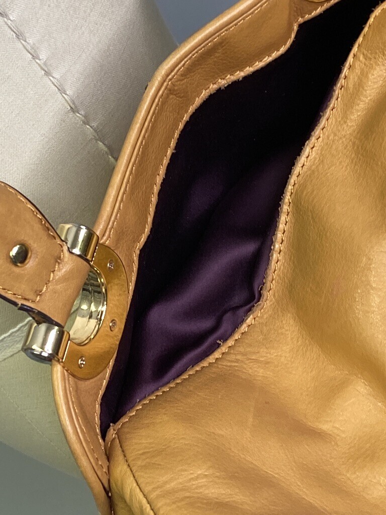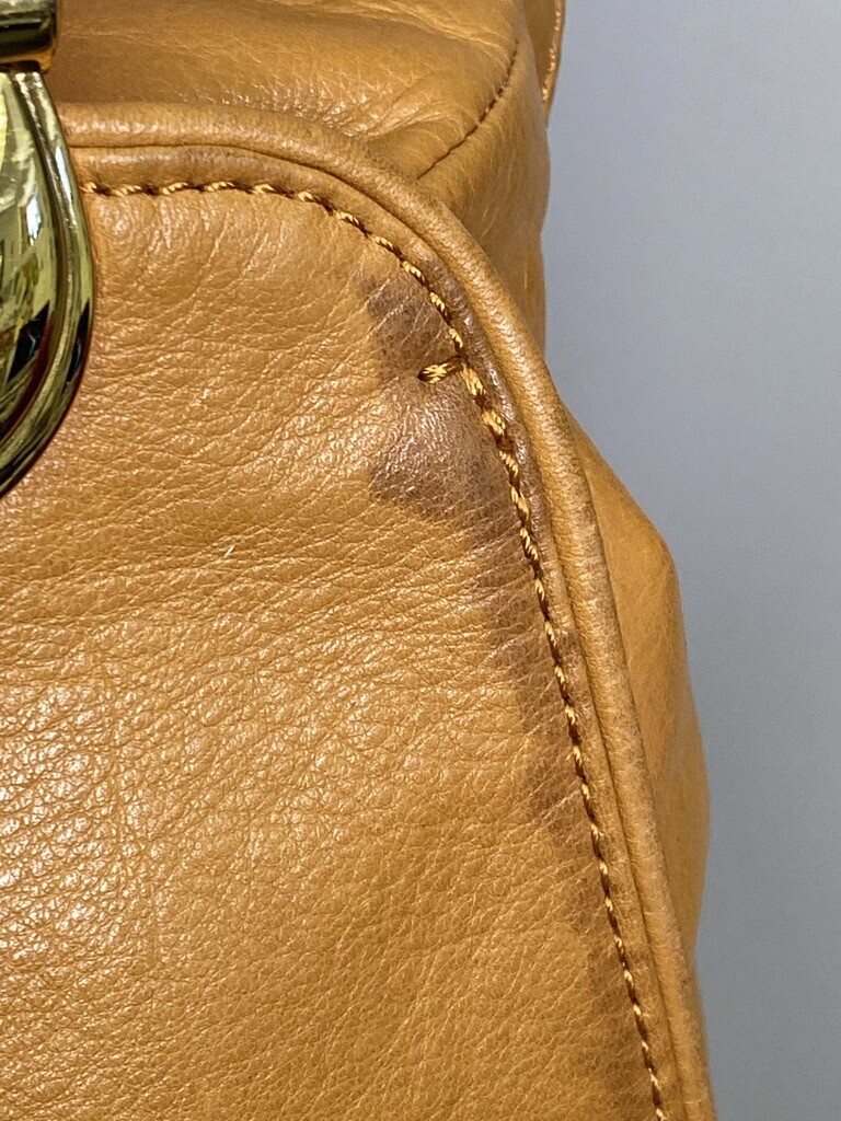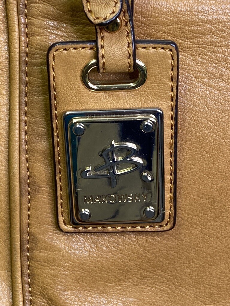 VTG B Makowsky 2 Handle Pocket Stirrup Shopper Bag Purse Distressed Tan Leather