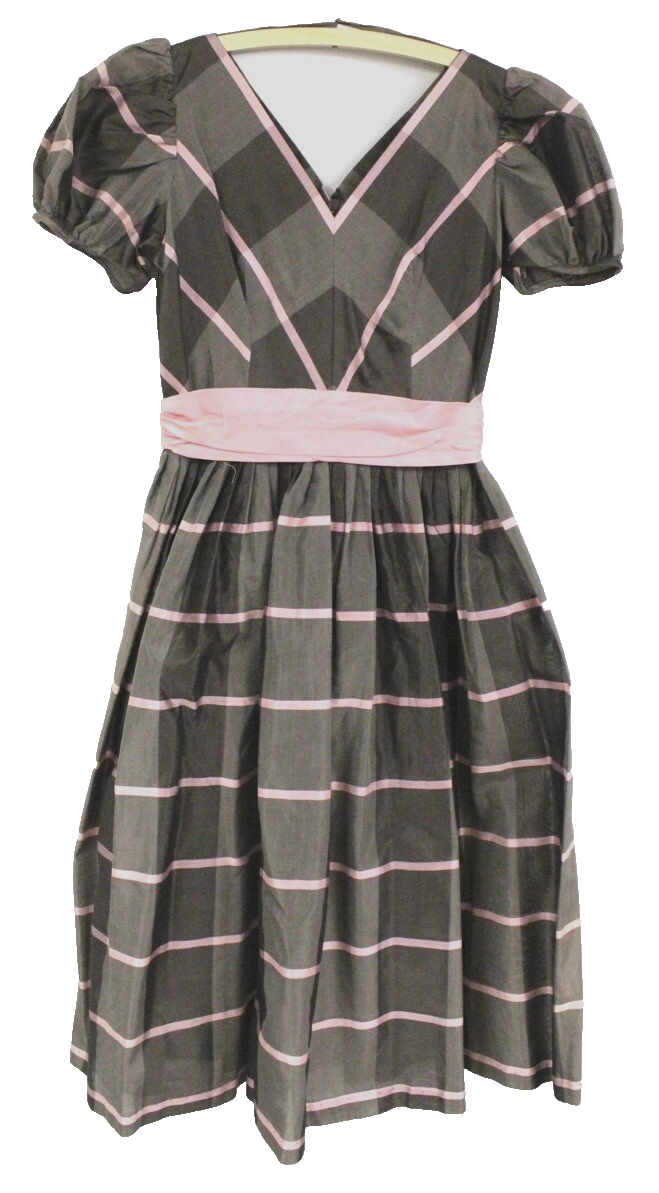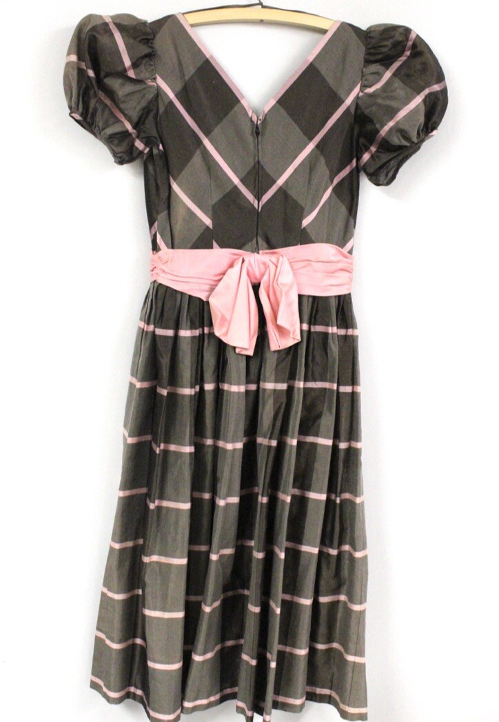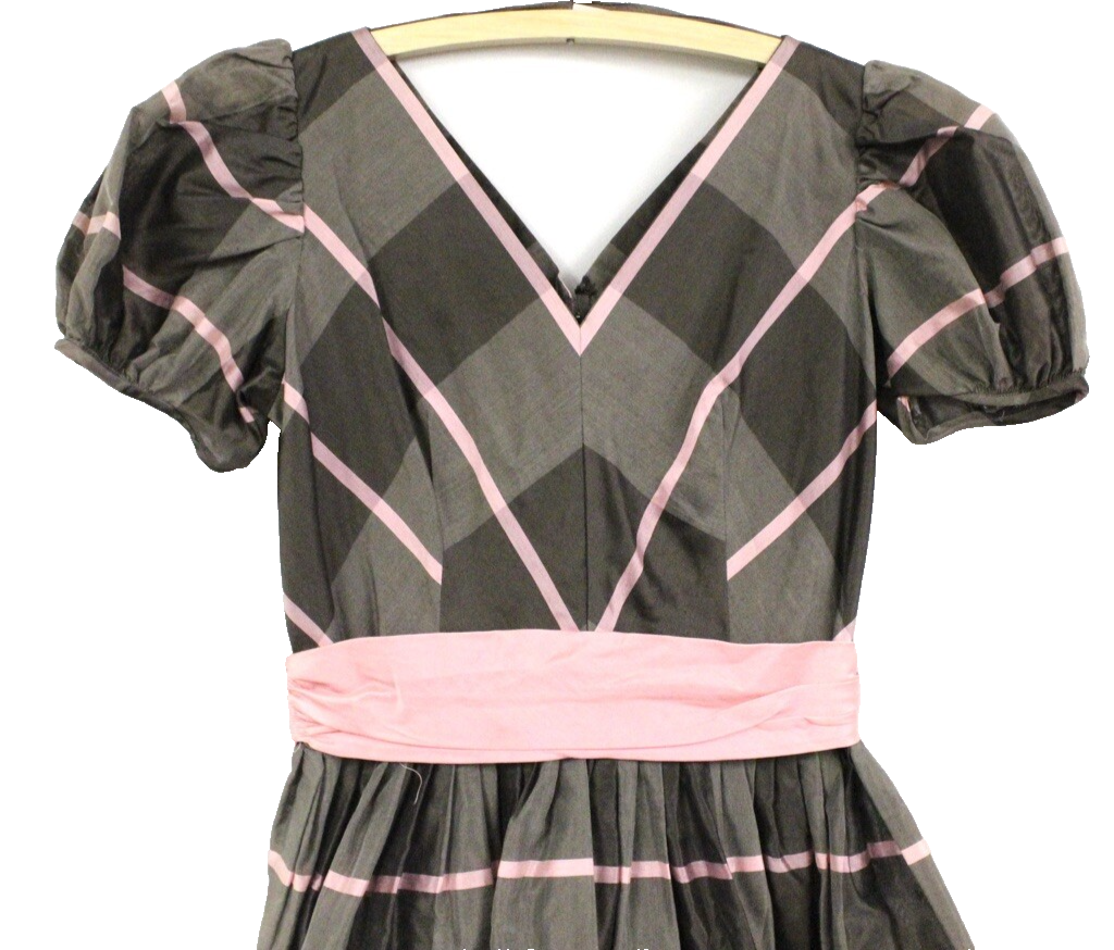 VTG 50s Polished Cotton Plaid Pink Gray Dress S-M 38-28 6-8 Full Skirt NWOT