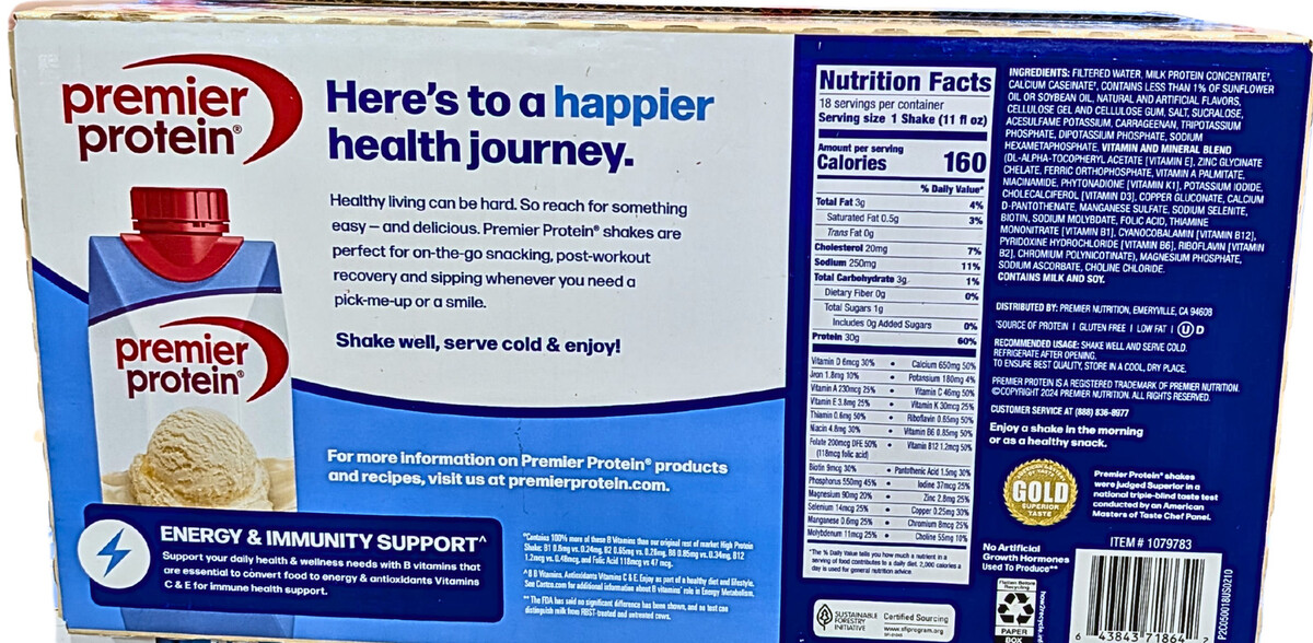 Premier 30g Plus High Protein Shake Vanila 18 Ct x 11 Fl Oz 10/26 EXP 01/2027