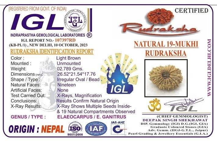 Rare 19 Mukhi Rudraksha - Nepal - 26.52 mm - IGL Certified