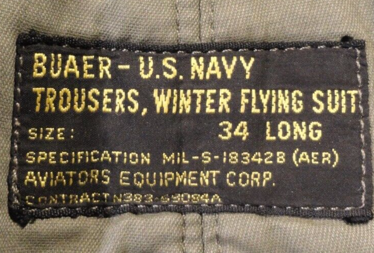 VINTAGE Vietnam Era Buaer US Navy Trousers Winter Flying Suit 36 LONG
