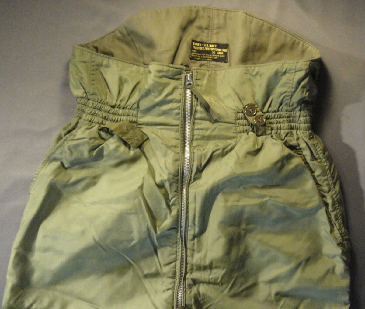 VINTAGE USN NAVY WINTER FLYING SUIT EXTREME COLD WEATHER OLIVE GREEN PANTS 36L