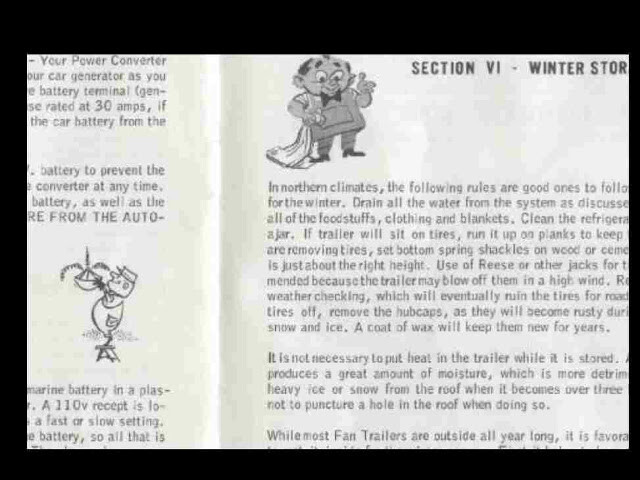 FAN TRAILERS HAVE RISEN DRAMATICALLY IN VALUE IN PAST YEARS, AND HAVE BECOME VERY COLLECTIBLE . THIS CD MANUAL COLLECTION PROVIDES DETAILED EXPLODED DIAGRAMS YOU'LL NEED TO RESTORE MAINTAIN YOUR FAN RV CORRECTLY. EVERYTHING FROM INTERIOR PLUMBING COMPONENTS AND 12V AND 110 ELECTRICAL SYSTEMS to APPLIANCES.