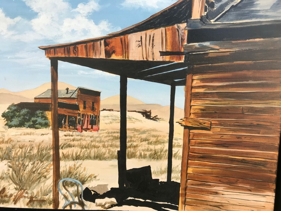"If you go into the Golden Horse Shoe at Disney Land in Anaheim, you will find this painting hung from behind the bar. While working for Disney Studio?s, I was asked to paint this by Walt Disney.