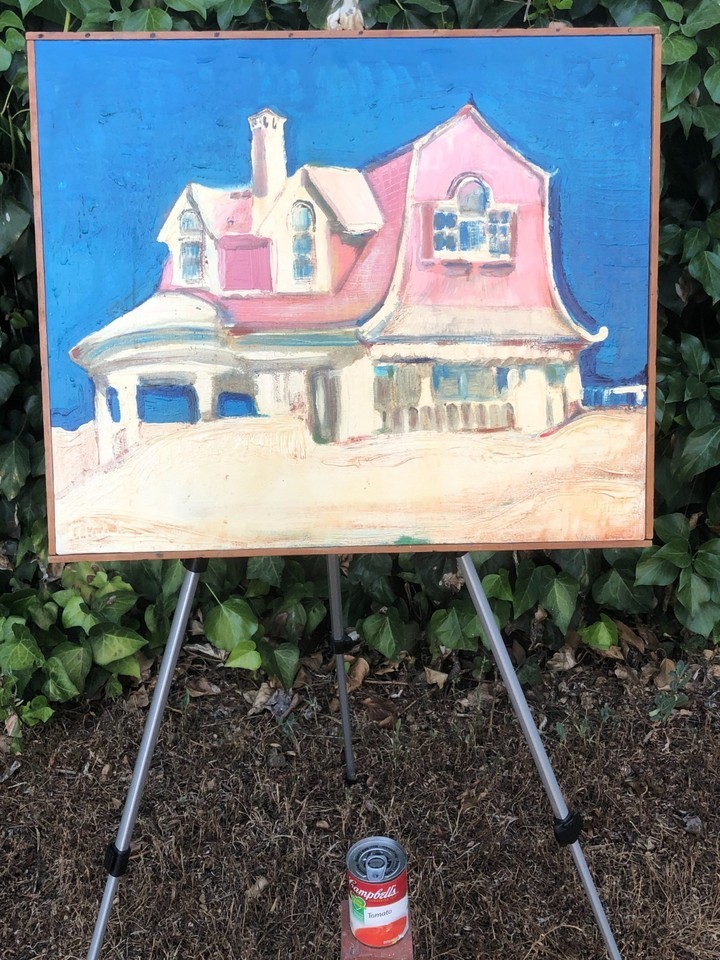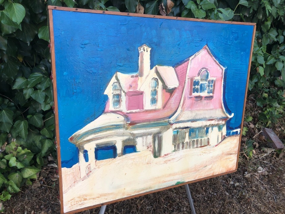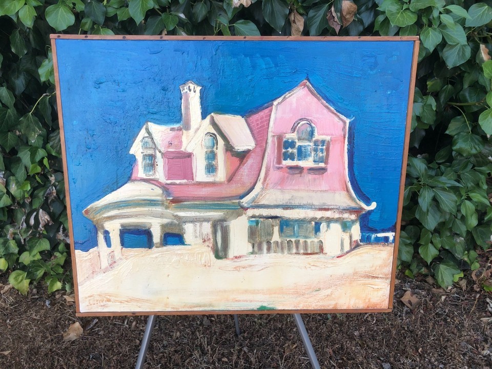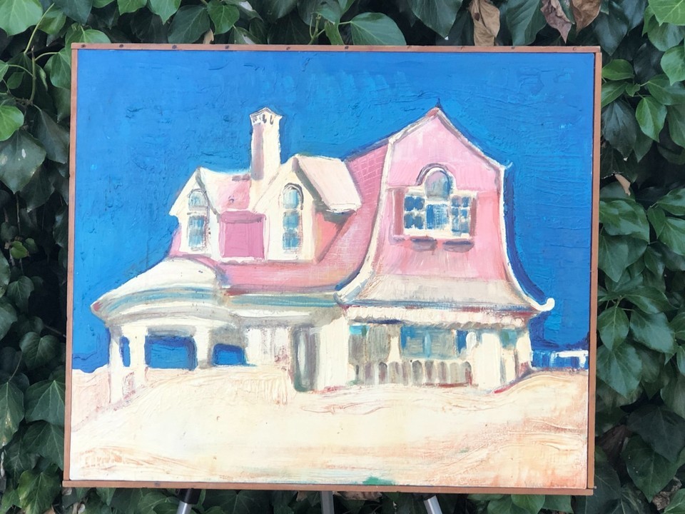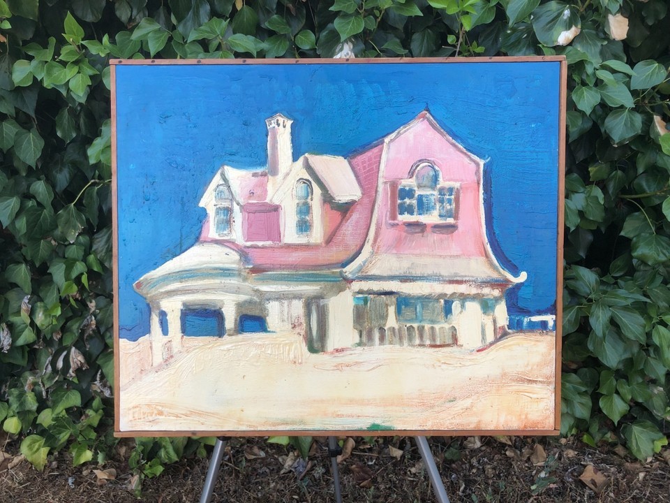 WARREN LONG Original ABSTRACT MODERN EXPRESSIONIST BEACH HOUSE CUBIC ACRYLIC OIL
