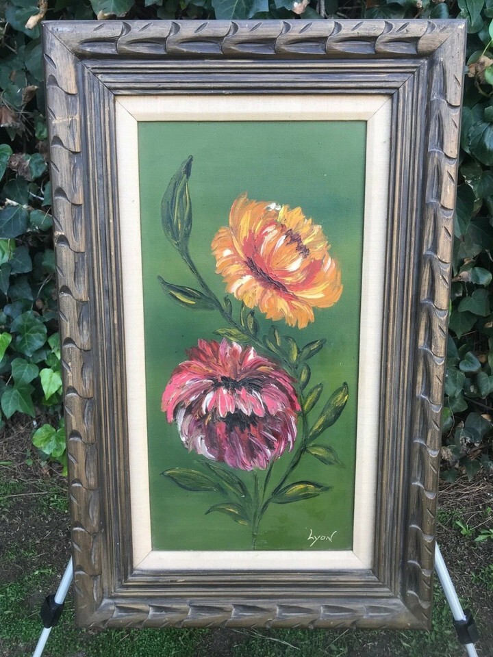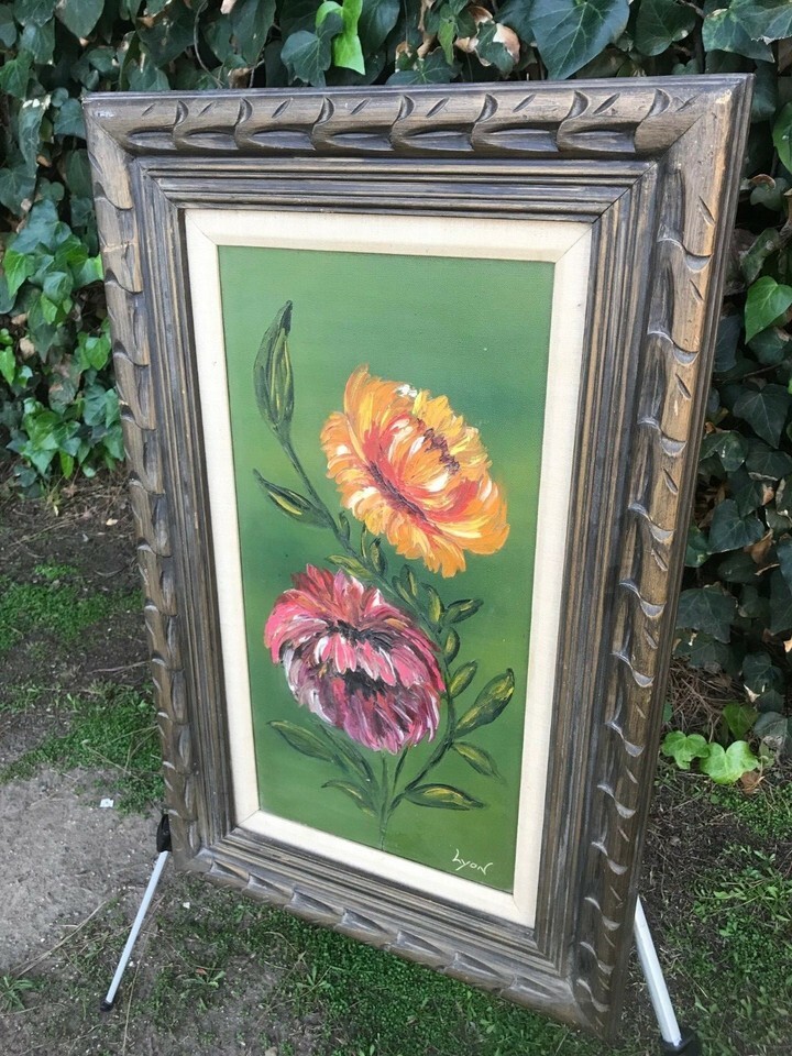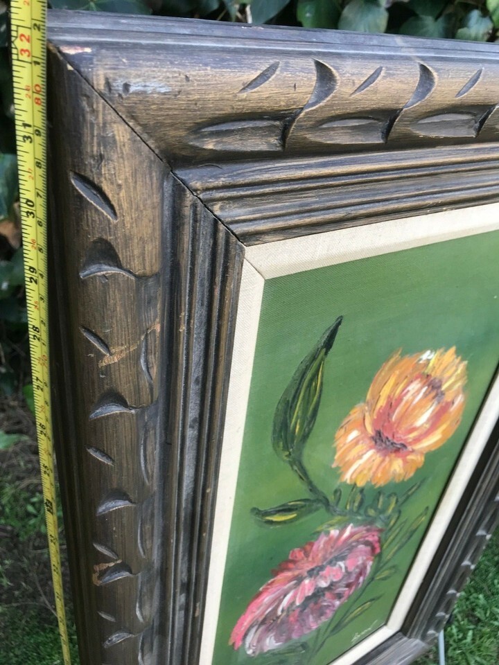 Vintage Floral Still Life with Original Distressed Hand Carved Frame