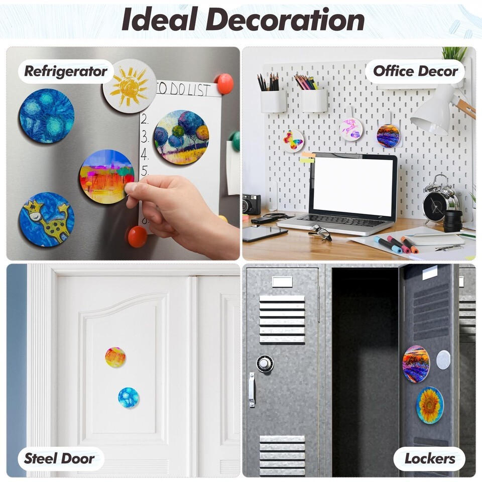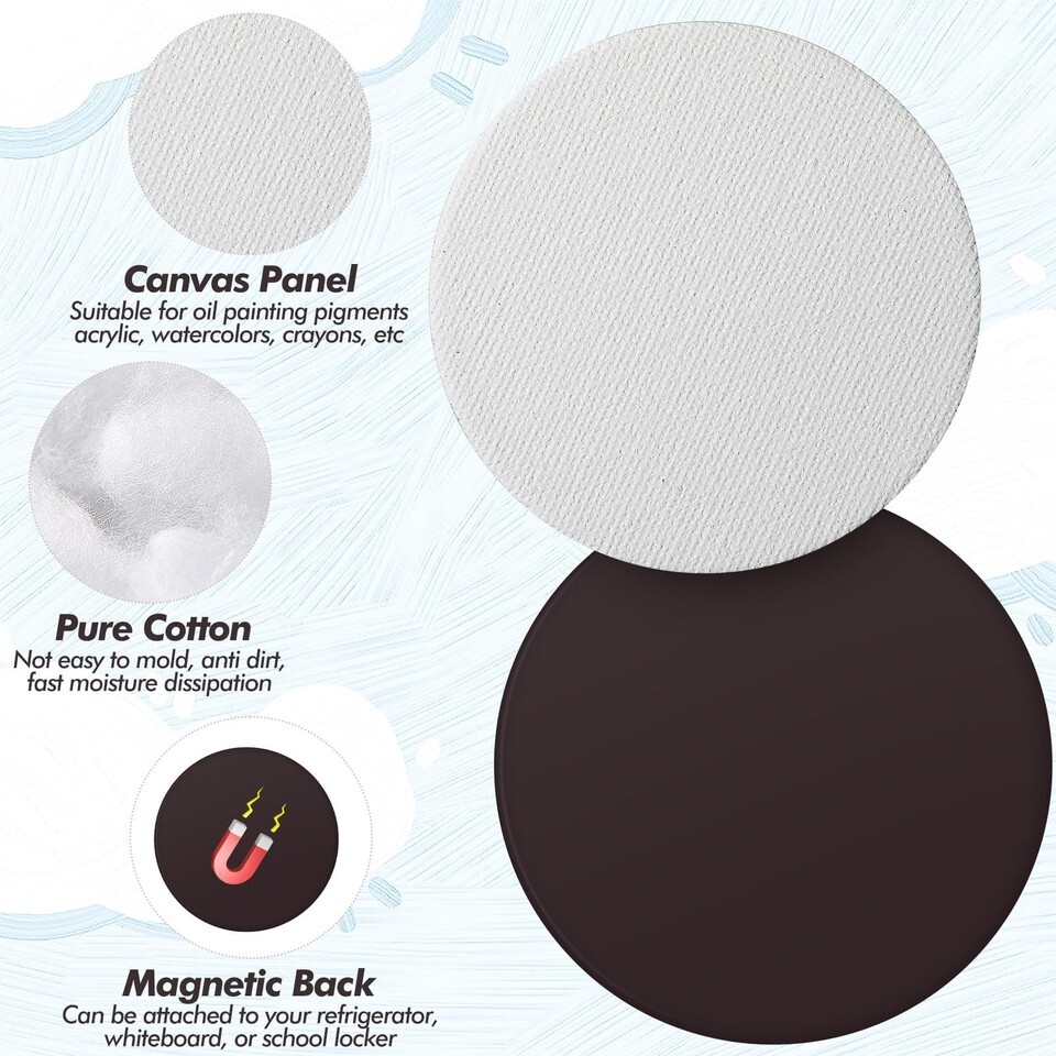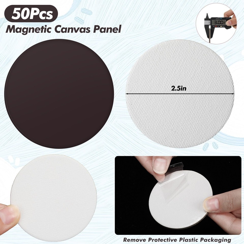 Quality and Quantity: our magnetic round mini canvases are a combination of quantity and quality; With 50 panels included in each package, there's plenty for most of your arts and craft needs; Made from canvas material with a reliable magnetic backing, these panels are not only sturdy but also stays firmly in place, whether attached to your refrigerator, whiteboard,Suitable Size: these canvases for painting are the nice size for most art projects; They are compact, making them easy to handle, place, and store, while still offering enough surface for your masterpiece; Despite their size, they will not easily fall off from their magnetic surface, ensuring your creations are displayed securely,Versatile Use: these magnetic tiles boast a wide array of applications; They're nice for artists looking to display their art nicely, or for busy professionals who need a creative way to organize reminders or lists; You can paint various artworks onto the white canvas and stick them onto various surfaces be it your workspace or study area, home, office, studio,Ingenious Design: the understated white color of these canvas panels acts as a blank canvas to bring out the colors of your art; Their intuitive design allows them to be easily affixed on to any magnetic surface, providing you an ever changing, dynamic canvas; You can use them on oil paintings, acrylic paintings, drawings and other works of art,Ideal Gift Choice: for those who love painting or sketching, these canvases make for an ideal gift and can simply place it on any metal surface; Colleagues, friends, or family members who love art will appreciate the thoughtful craftsmanship and utility of these panels; Giving them the opportunity to display their creativity in a novel and exciting way