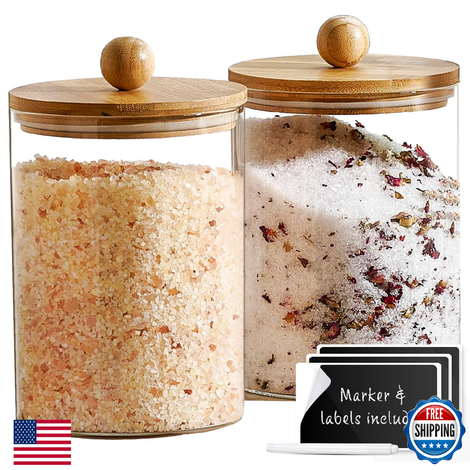 VERSATILE STORAGE SOLUTION: This set serves as a multifunctional kitchen organizer, perfect for storing coffee beans, or as a coffee pod holder. tea leaves, spices, rice, and other essentials while adding a cute and elegant touch to your kitchen decor.,PREMIUM QUALITY MATERIALS: Crafted with high-quality clear borosilicate glass and eco-friendly bamboo lids, these canisters provide a chic and durable storage solution for your pantry, ensuring your items stay fresh and visible.,AIRTIGHT SEAL for FRESHNESS: Seal in the freshness of your favorite ingredients with airtight bamboo lids, keeping your favorite tea, coffee beans, exotic spices, essential baking ingredients, and more at their peak flavor.,COMPLETE SET with MARKER LABELS: Stay organized with the included marker and labels for easy and stylish organization. Personalize your canisters and always know what's inside at a glance.,SUSTAINABLE BAMBOO and WIDE MOUTH DESIGN: The bamboo lids not only contribute to the aesthetic appeal but also represent a sustainable choice. The wide mouth design ensures easy access and convenient scooping and pouring of your kitchen staples. Ideal for storing a variety of items, from bulk cereals to snacks and even pet treats.,STYLISH DESIGN with BAMBOO ACCENTS: The combination of clear glass and bamboo lids not only ensures durability but also adds a touch of elegance to your kitchen decor. Perfect for both modern and classic styles.,IDEAL for VARIOUS KITCHEN ESSENTIALS: Whether you're storing coffee, coffee pods, tea, spices, or other kitchen essentials, these canisters with a vintage apothecary jar design provide a decorative solution for a wide range of items, making them a must-have for any home.
