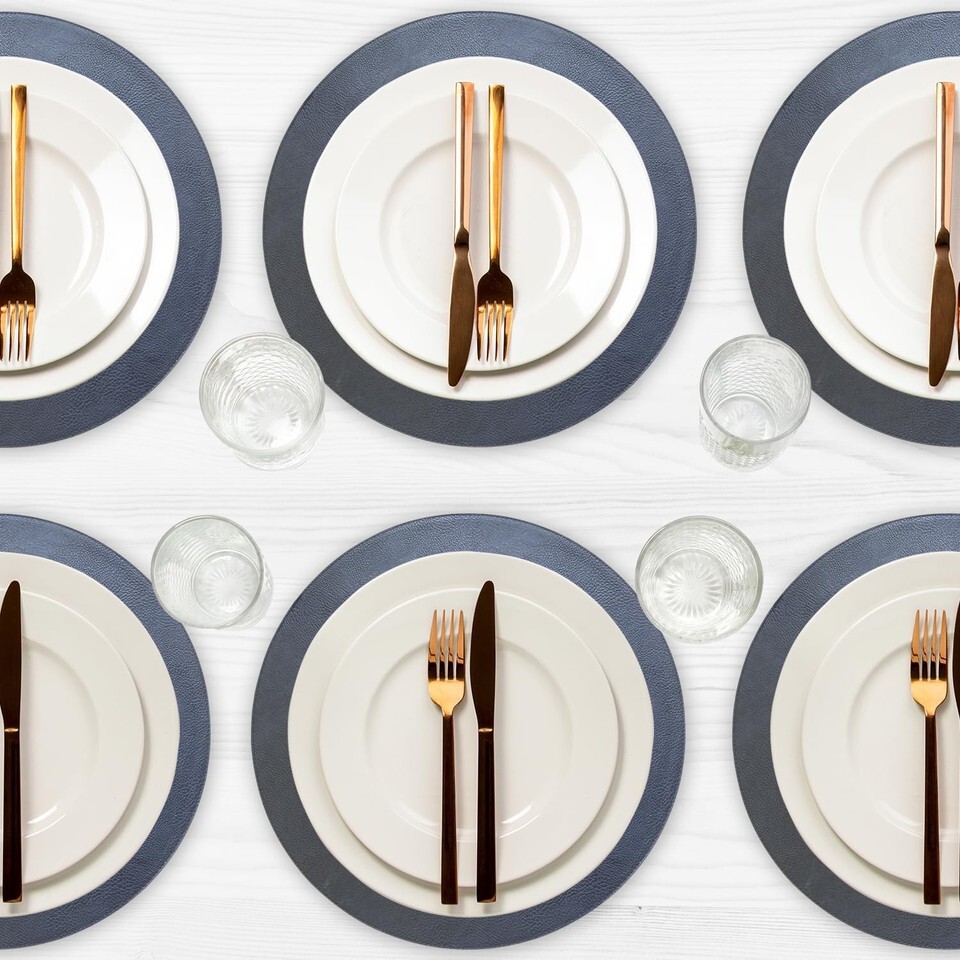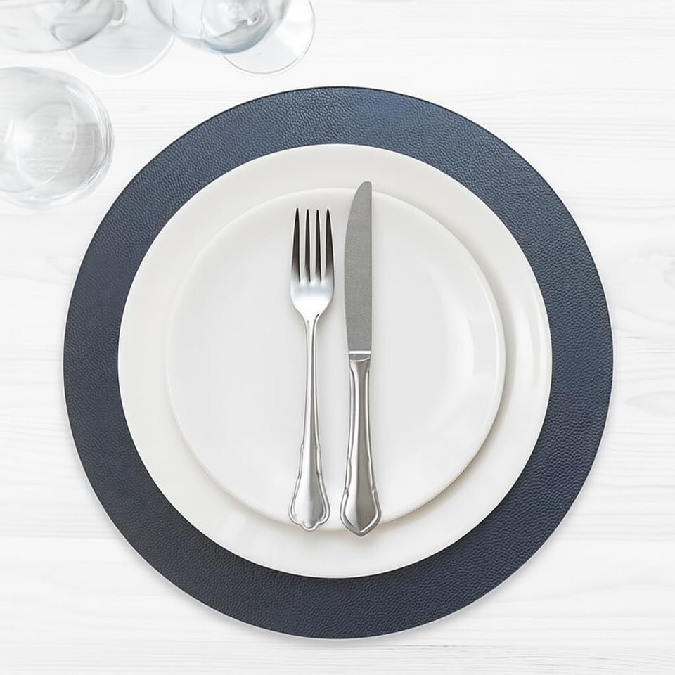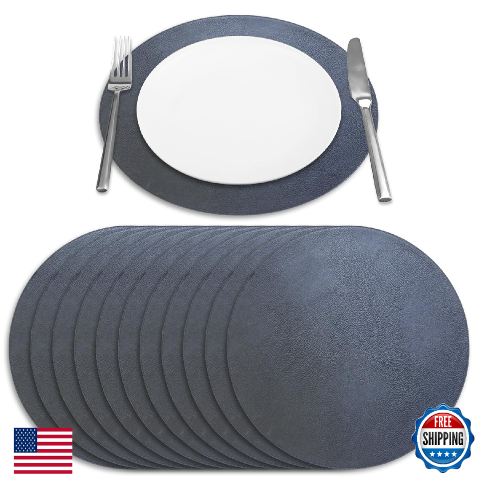 Homewear Morgan Faux Leather 12-Pack Placemats, 15" Round, Navy, Heat Resistant