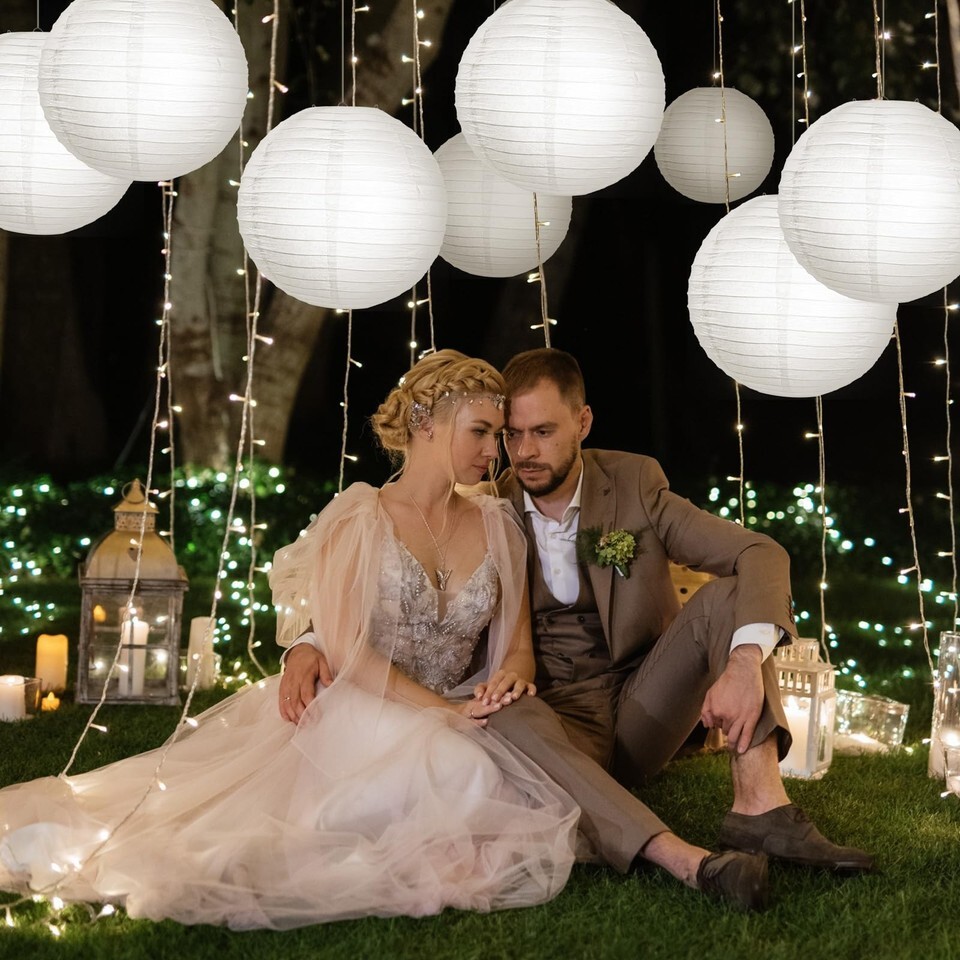 Treela 30-Pack 6" White Chinese Japanese Paper Lanterns Decorative Hanging