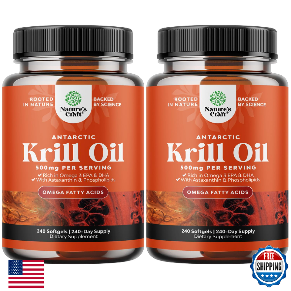 Better than Fish Oil - Try our Antarctic krill oil 500mg omega-3 with astaxanthin DHA EPA and phospholipids and enjoy a increased absorption omega 3 fish oil 500mg capsules to support your health,Omega 3 6 9 - Omega 3 fatty acids are needed for countless bodily functions and many people don?t get enough in their diet which is why our krill oil omega 3 supplement may be just what you need,Healthy Heart Health Supplement - Wild caught krill oil has been shown to support healthy heart health while being more nutrient dense than generic burpless fish oil supplements,Nutrient Powerhouse - Krill oil is one of the best sources of omega 3 fatty acids EPA DHA that is also naturally rich in vitamins A and antioxidants best taken with meals for even better absorption,Natures Craft Quality - We are proud to be a leading name in a variety of essential fatty acid supplements because we believe in the power of Mother Nature to help provide a healthier lifestyle