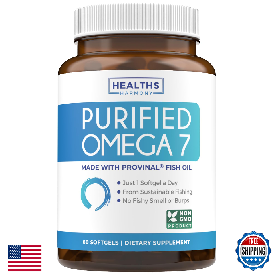 Potent: Give your body the Palmitoleic Acid Ethyl Ester it needs with a minimum of Palmitic Acid. This patented Provinal non-GMO, non-dairy, gluten-free formula, bottled in the USA, is widely acclaimed for its potency and purity.,Help Your Body Help Itself: The Omega 7 fatty acid in our purified oil has been shown to be helpful regarding general wellbeing.,Pristine And Sustainable: Unlike some formulas, our potent, purified oil actually comes from fish ? the Peruvian Anchovy to be exact ? which is harvested in a sustainable manner to ensure eco balance and a continuous supply. The World Wildlife Fund has recognized the Peruvian Anchovy fishery for their sustainability efforts.,Not Your Father?s Oil: Thanks to the latest purification techniques, you can be sure that your Omega 7 softgels won?t cause unpleasant odors or gastrointestinal effects (those fish burps are a thing of the past). We manufacture our ultra-purified oil in the best state-of-the-art facility with stringent quality controls to help ensure purity and potency. In fact, you need take only one capsule per day to experience the full benefit of this integral supplement., Today: Incorporate Healths Harmony Purified Omega 7 into your daily routine, and feel the difference for yourself; click today!