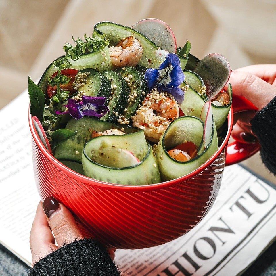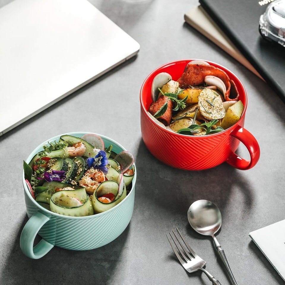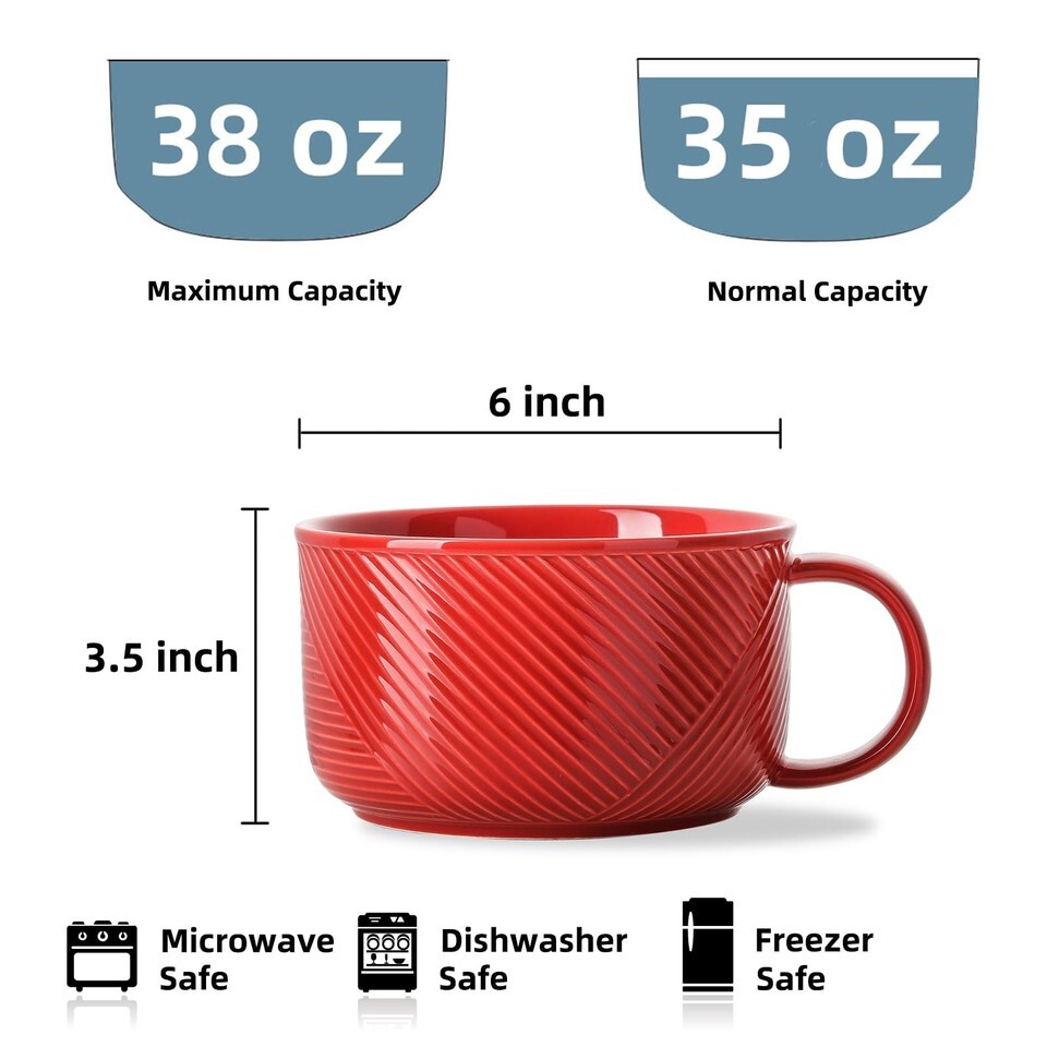 Adewnest 38oz Ceramic Soup Bowl w/ Handle - Microwave/Dishwasher Safe Noodle Mug