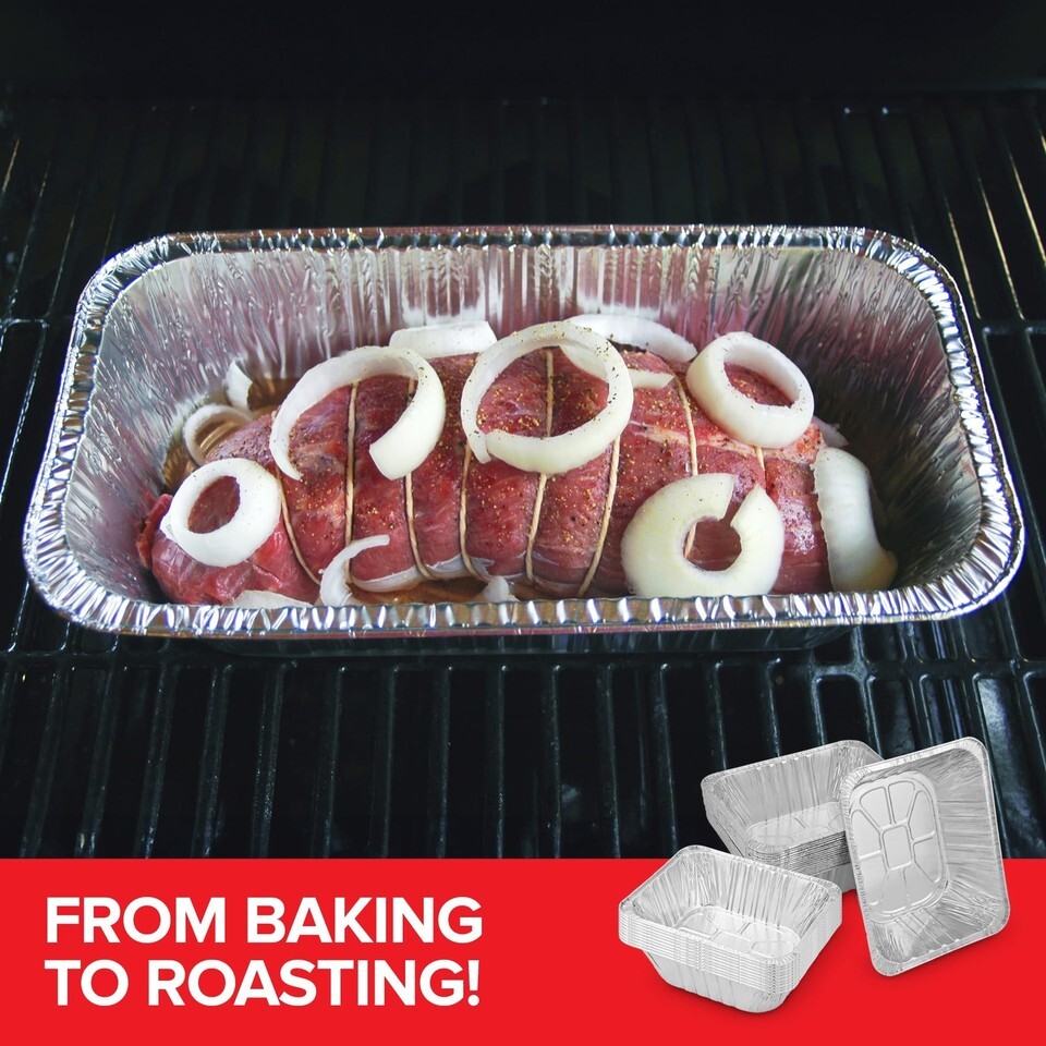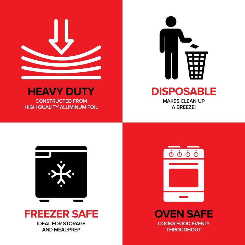 Meal-Prep: Use our deep aluminum pans disposable to store, cook, and serve meals. The best part? No mess! - Simply throw it away when you're done.,Packaged in the USA: Our heavy-duty deep foil pans 9x13 have high heat retention. This creates that delicious, golden crust when cooking food.,Easy Transport: Keep your food warm, fresh, and protected. Our aluminum baking pans 9x13 are convenient for party catering, takeout, and delivery.,Versatile: Our extra large aluminum foil pans are great for sheet cake, brownies, turkey, and lasagna - as well as holidays like Thanksgiving and Christmas.,Great Value Pack: Includes (20) deep dish disposable pans. Dimensions: 12.5? Top L x 9.5? Bottom L, 10.25? Top W, 7? Bottom W, and 4? H.