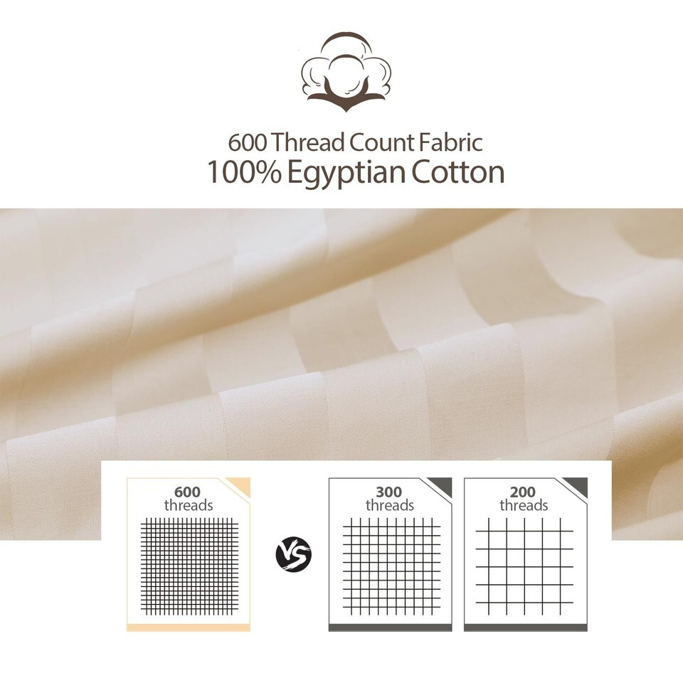 Twin Size Striped Fitted Sheet Only Beige Color, 100% Egyptian Cotton 600 Thread Count, 16" Deep Pocket Premium Cotton Mattress Sheet (1 Bottom Sheet Only)