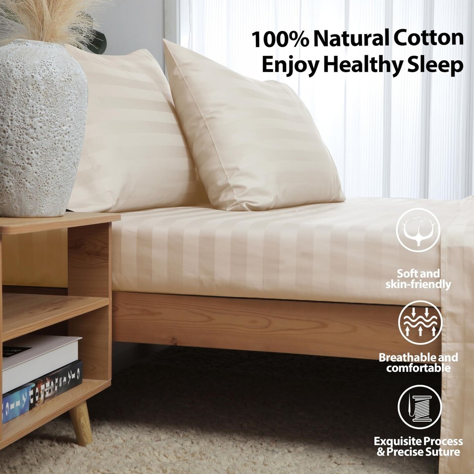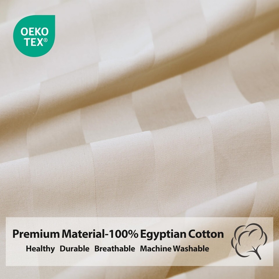 Twin Size Striped Fitted Sheet Beige 100% Egyptian Cotton 600TC Deep Pocket