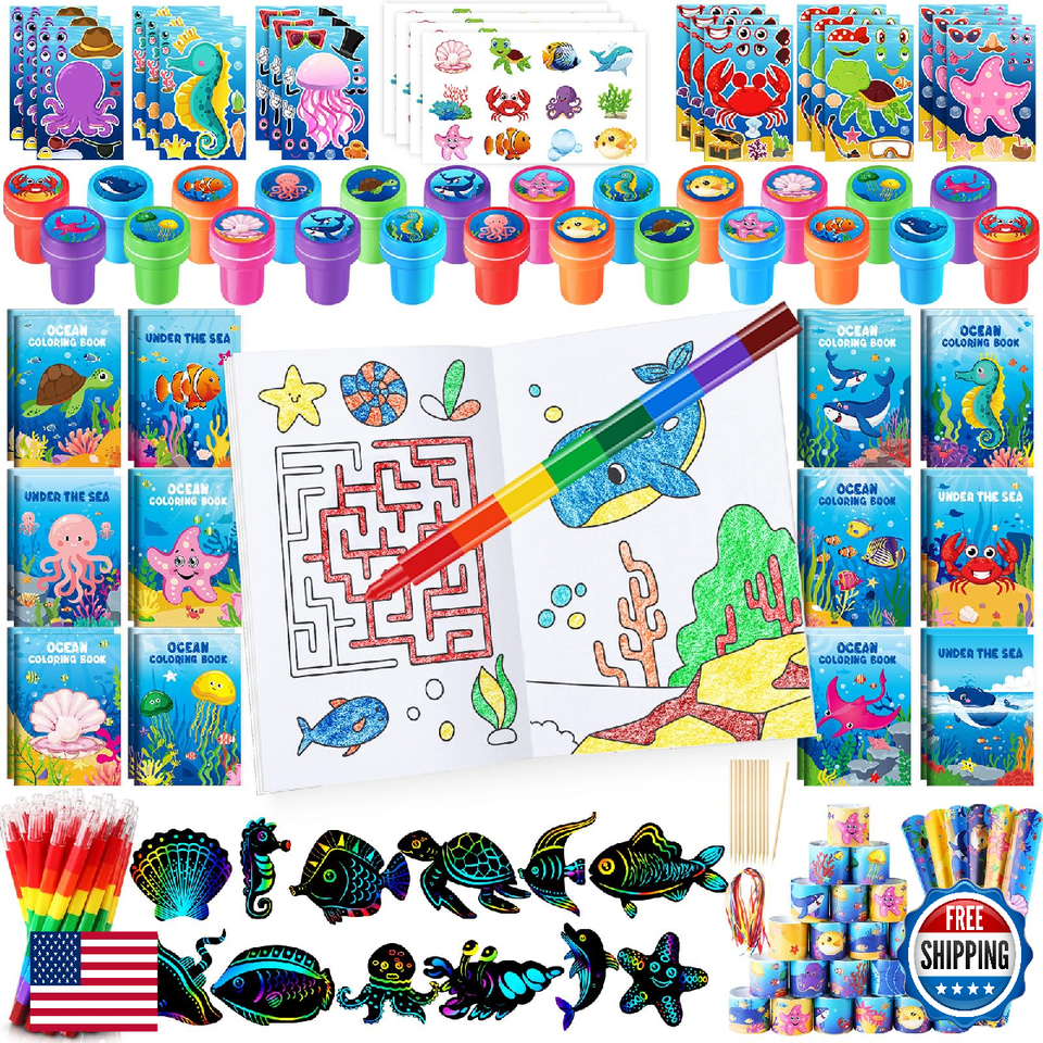 BenLouis 96PC Under Sea Party Favors Ocean Animals Coloring Books & Supplies Set
