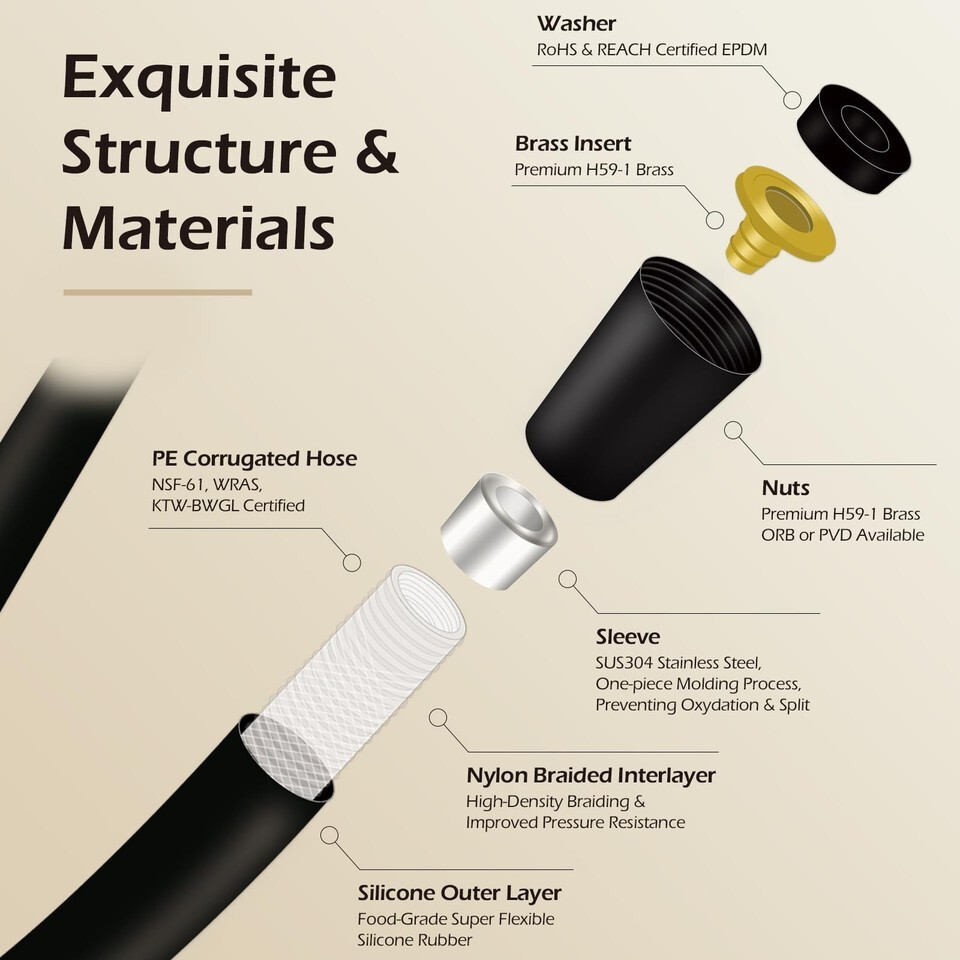 BriskSpring 69" Ultra-Soft Silicone Shower Hose, Anti-Kink, NSF Certified