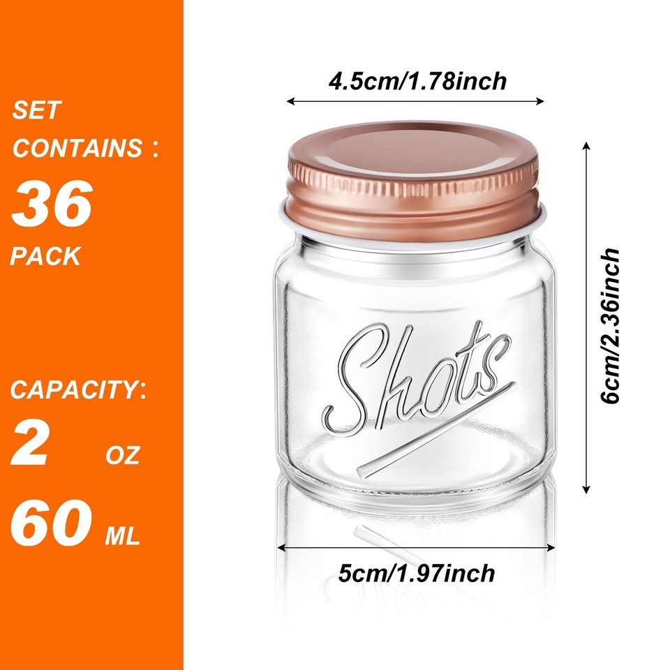 Tessco 36 Pcs Mini Mason Jar Shot Glasses with Lids 2 oz Dishwasher Safe