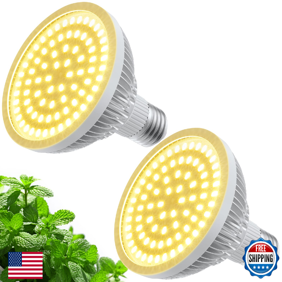 High Quality: This plant grow light bulb contains 78 pieces of big size(5730) 0.5-watt LED chips, which can provide more PPFD and brighter light than other bulbs normal size(2835) 0.2-watt LED for your plants . Equal to traditional 180W grow light bulb, but this grow light bulb consumes less than 18W of energy, this is a good energy-efficient option.,Safe and reliable: This plant grow light bulb adpot drive power supply with isolated output,this design ensuring the safety when you touch it during it is working, and make this LED lifepan more longer,no light decay. It is designed to protect against electric shock and achieve to V0 flame-retardant grade.The LED light is not dimmable, don't install it on dimmable lamp.,Effective Spectrum: The full-spectrum grow light bulb emits light between 350nm-800nm and has a CRI of 95+, the warm light temperature is 3500Kelvin and meanwhile people feel comfortable for this color. This makes it an excellent choice for indoor gardening, suitable for every cycle of plant growth, effectively promotes plant growth, and improves crop yield and quality,can be used for a variety of indoor plants.,Easy to use: This indoor plant lights are easy to install and operate. PAR30 and E26/E27 socket,perfect size and weight, can be installed on each kind of lamps,like clamp lamp,ceiling lamp,floor lamp,table lamp and so on.,Guarantees: 100% aging test,quality and safety verified, one year warranty.