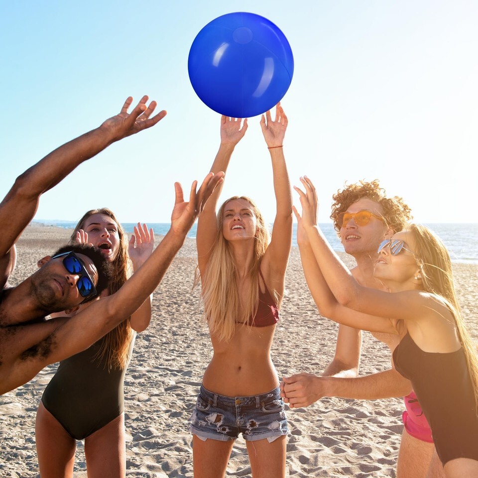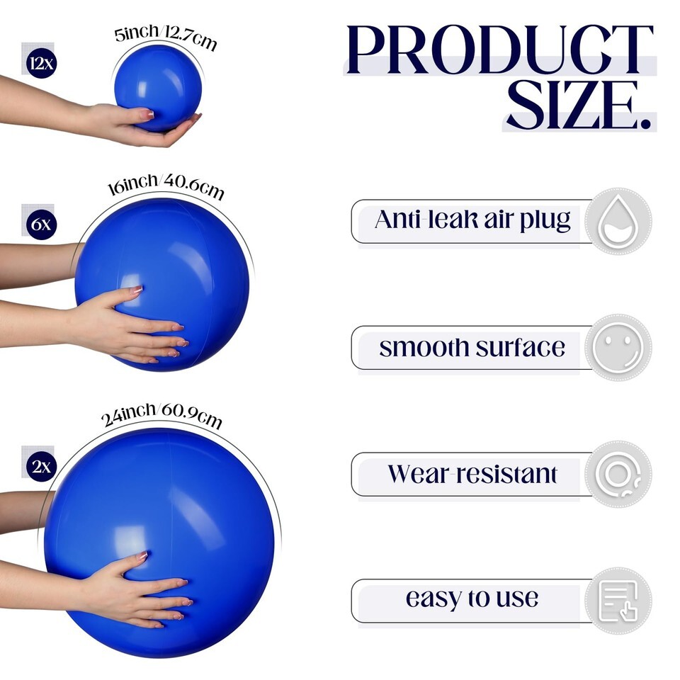 Multiple Sizes: the package contains 20 pieces of blue inflatable beach balls in 3 different sizes, including 2 pieces of 24 inches, 6 pieces of 16 inches and 12 pieces 5 inches, sufficient quantity and diverse sizes to meet your various needs for beach pool entertainment,Blue Beach Balls: the inflatable beach balls are blue design, which is beautiful and attractive especially under the sun or spotlight, cater to their tastes,Quality and Reliable Material: the beach balls are made of quality PVC vinyl, with a quick valve system, which is not easy to fade or break, nice for summer use, reusable and long lasting; Please be careful when inflating and keep it away from pointed items,Easy to Inflate and Deflate: just use a pump (not included) to inflate the inflatable balls, or exhale air into the quick valve system; When not in use, you can open the valve and squeeze out the remaining air to deflate; Lightweight and portable to carry, and convenient to store without taking much space,Versatile Uses: the inflatable pool balls can be applied for beach, sea, pool party, summer themed party, birthday party, disco party and so on, allowing you to have an enjoyable and pleasant time with your friend and families