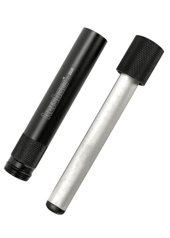 The Ultra-Tek Blade Sharpener is the convenient way to keep your Kershaw sharp. The Ultra-Tek is a compact sharpening steel that lets you quickly and easily touch up the edge on your Kershaw anywhere, anytime. The Ultra-Tek handle is made of 6061-T6 anodized aircraft aluminum. Stored inside the handle is a 600-grit, diamond-coated oval shaft. This is the perfect grit for restoring an edge that is in generally good shape, but is just dull. Simply unscrew the shaft from the handle interior, turn it around, and screw it on to the other end of the handle. Now the Ultra-Tek is a comfortable 9-in. length, ideal for both sharpening and realigning the edge of your Kershaw blade. You can look to Kershaw for everyday carrying knives that can tame any cardboard box and liberate any purchase from its plastic packaging, sporting knives that make hunting, fishing, watersports, and camping even better, work knives that wonat let you down, and tactical knives that ensure youare ready for anything.