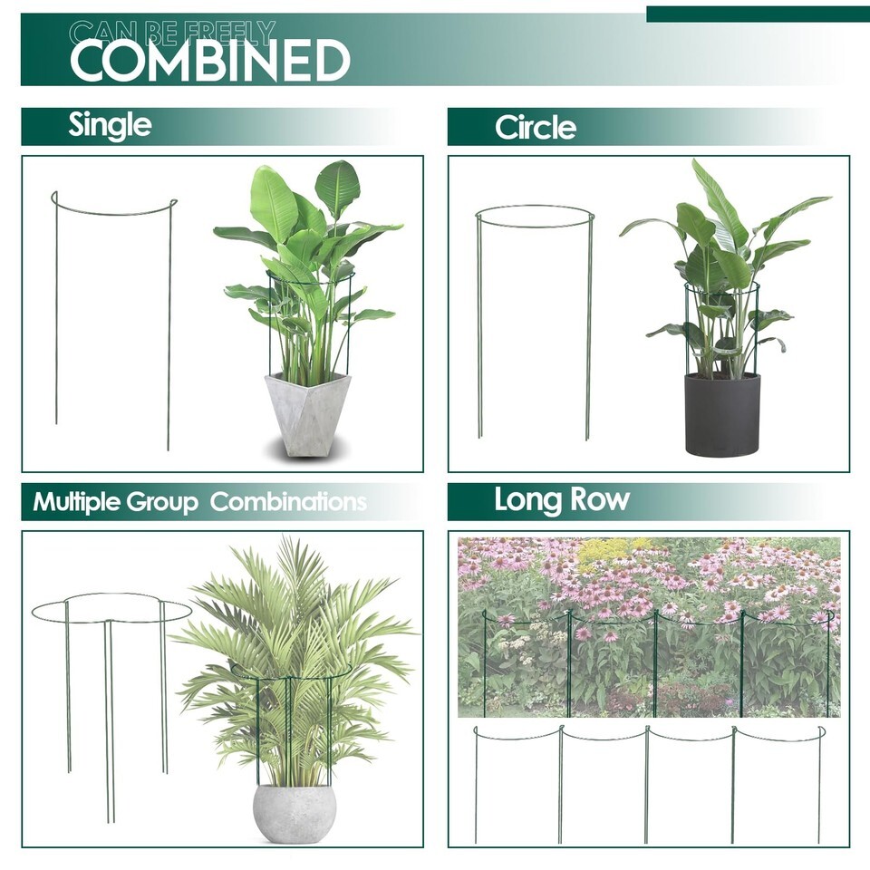 ?30 inch High Plant Support: 30" H x12.5" W , this size is perfect garden supports for most bushy plants like hydrangeas, peonies, rose, tomato plants .They hold up plants that are top heavy and need help, especially suitable for well established heavy peony growth, and also can be used as border to keep pathways open in your garden.,?Adjustable Plant Support Stakes: Consists of 15-inch plant supports and 15-inch stainless steel tubing 30-inch plant supports (screw the top half of the threaded wire and the bottom half of the stainless steel tubing together Iron tubing twisted together to extend the length to 30 inches high - DIY).The plant support rings are made of sturdy iron wire in 5 mm diameter with green powder coating, not easy to deform, stand firmly, well support and protect plants. they are semi-circular.,?Half Round Peony Plant Stakes: Half round deisgn make it easy to fit around the plants, just attach 2pcs together to prop up your plants to grow straightly and healthily peal prevent leaf, branch and vine from drooping. protect plants against strong wind, heavy rain or their own. Works so much better than when you try to use the full rings around the plants to meet your practical. Perfect solution for your indoor and outdoor plants.,?Multi-purpose Plant Supports Stakes: Just push the plant stake into earth, used as a single half or to link with each other to form circles, rows, cloverleaves etc. You can use as many or as few of them as you need on a plant and vary the direction You also do not break part of the plant, and can be overlapped, save space and easy to store.,?Package Includes: 6 pieces 15inch LKSSZS half round plant support stakes + 12 stainless steel extension tubes (Boxed) + 164 Feet Garden Plant Ties. They will likely prove to be one of your favorite garden helpers. If you have any questions of plant trellis, please kindly feel free to contact us, we are committed to providing the best possible service to our customers.