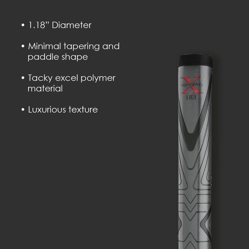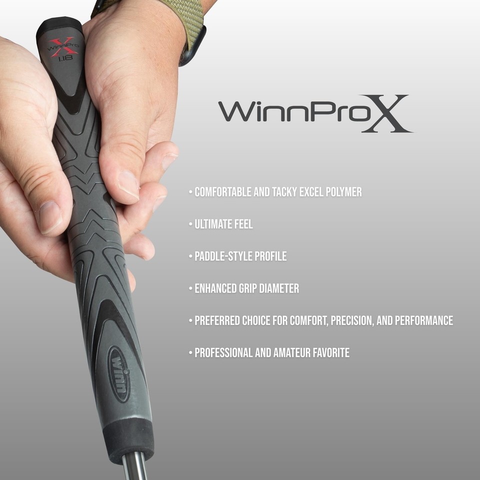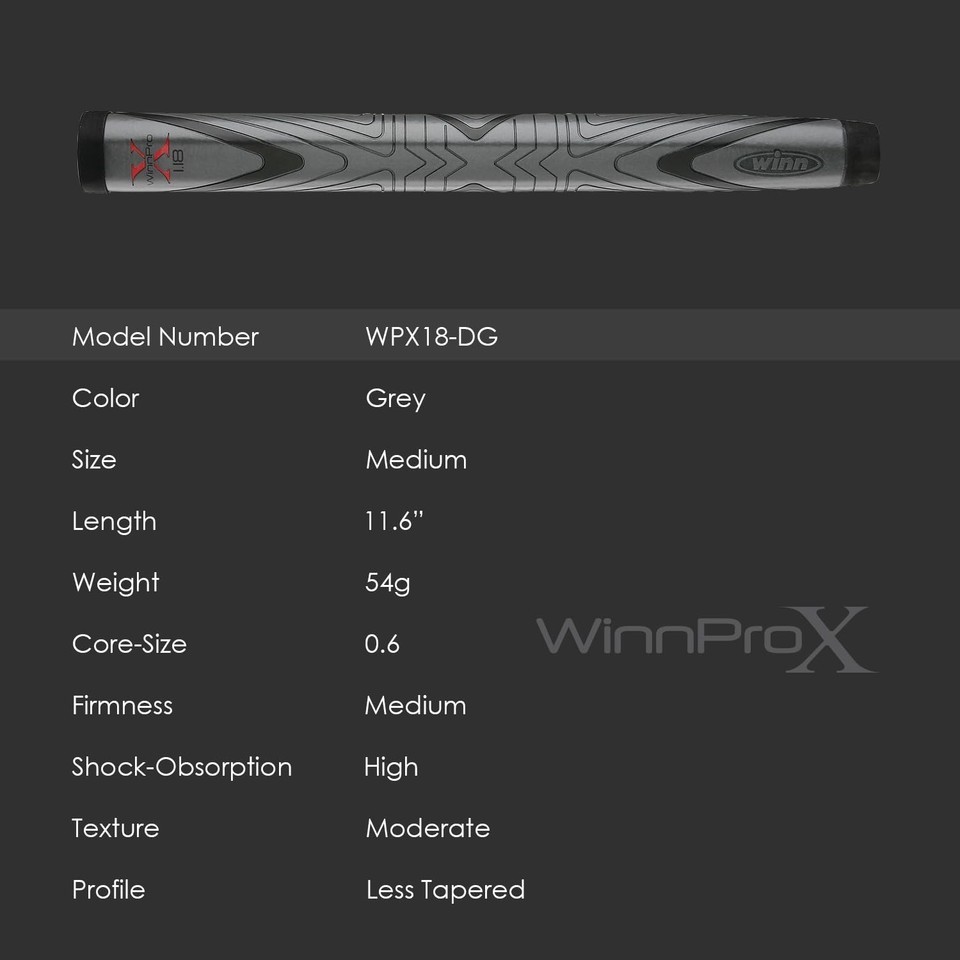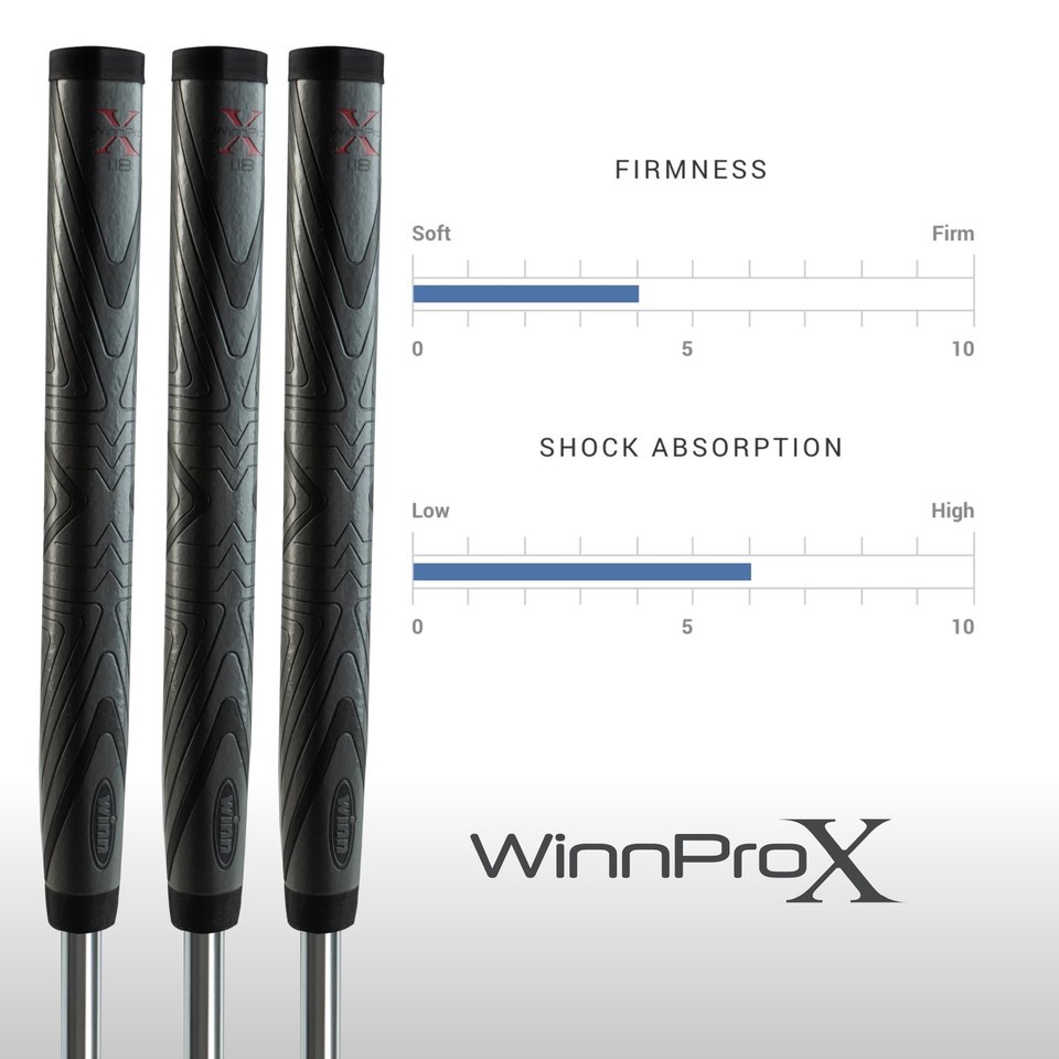 Offered in 3 sizes, WinnProX uses a less tapered profile than traditional designs to eliminate wrist movement during the stroke while still delivering that comfortable, tacky feel youave come to expect from Winn. WinnLite Technology is also utilized to minimize grip weight, enhance clubhead feel and provide stability during the putting stroke.