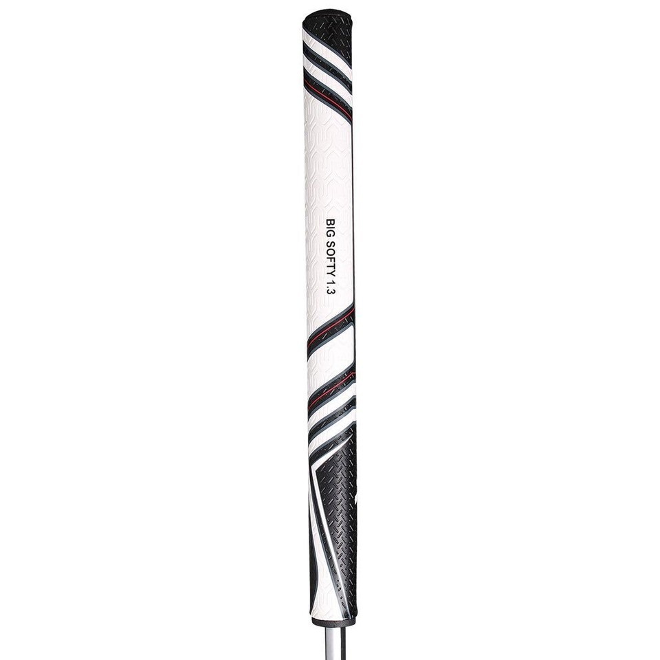 Itas big, itas soft, and perfectly suited to todayas modern putters. The Karma Big Softy 1.3 putter grip features a reduced taper profile with a wide flat front to take the wrists out of the putting stroke, resulting in a smoother, more consistent, and more accurate putting experience. Its super soft polymer, multi-texture pattern provides a comfortable, tacky feel and long-lasting durability. The 16a extended length is perfect for both standard length putters (use stepless putter shafts for best results) and mid-length / armlock style putters. For counter-balancing options, pair with aftermarket shaft counter weights before grip installation.