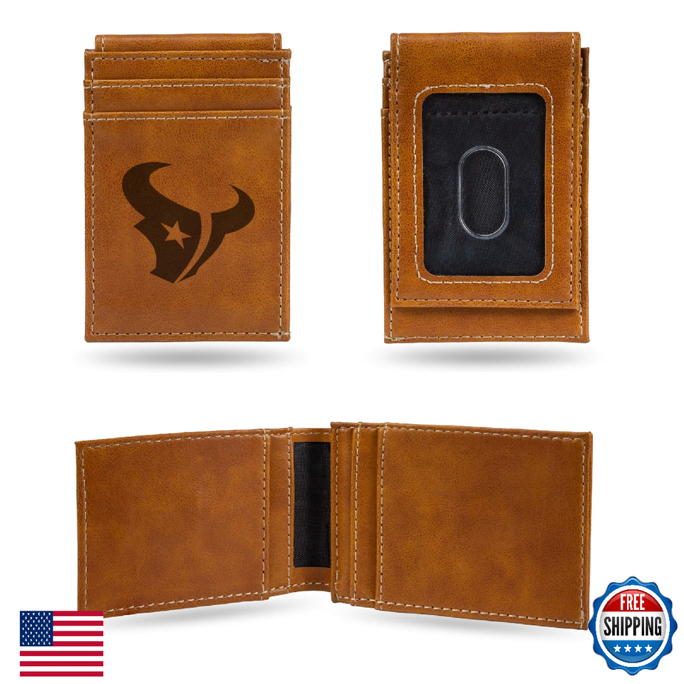 Rico Industries Houston Texans Laser Engraved Front Pocket Wallet, Brown