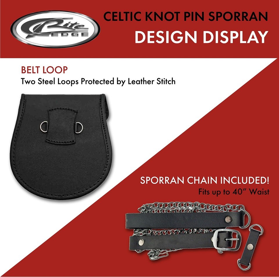SZCO 8" Celtic Knot Leather Sporran with Chain & Belt, Black – Tassel