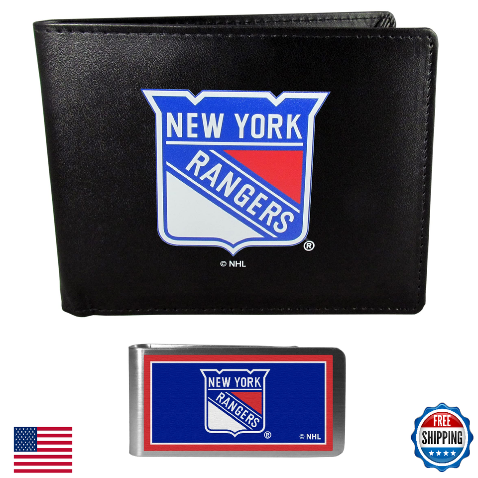 NHL New York Rangers Bi-fold Wallet & Color Money Clip - Black