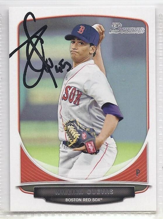 For Sale is a William Cuevas Signed Autographed Card 2013 Bowman Prospects. all autographs are obtained in person at games, practices, golf tournaments, airports, theaters, arenas, airports. it will be accompanied by a COA from our company. Please ask Any and All Questions prior to purchasing. Fast Same or Next day shipping with Free Delivery Confirmation within the U.S. Payment Due within 7 days of purchase (if you need more time please let us know In advance) we love to combine shipping is always a Yes and Most of the time Additional Items Ship for free.