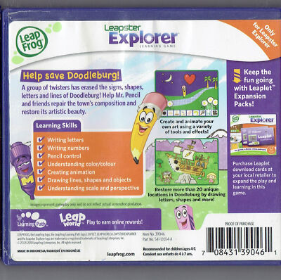 For Sale is a rare and hard to find leapFrog Explorer Game Cart Mr. Pencil Saves Doodleburg Rare HTF! Its In very good USED condition and Play Tested as can be seen from the pictures provided. Its for the Game Only no box or instructions. This can be used on LeapPad Explorer tablet systems. Please ask Any and All Questions prior to purchasing. Fast Same or Next day shipping with Free Delivery Confirmation within the U.S. Payment Due within 7 days of purchase (if you need more time please let us know In advance) we love to combine shipping is always a Yes and Most of the time Additional Items Ship for free. SKU4MS