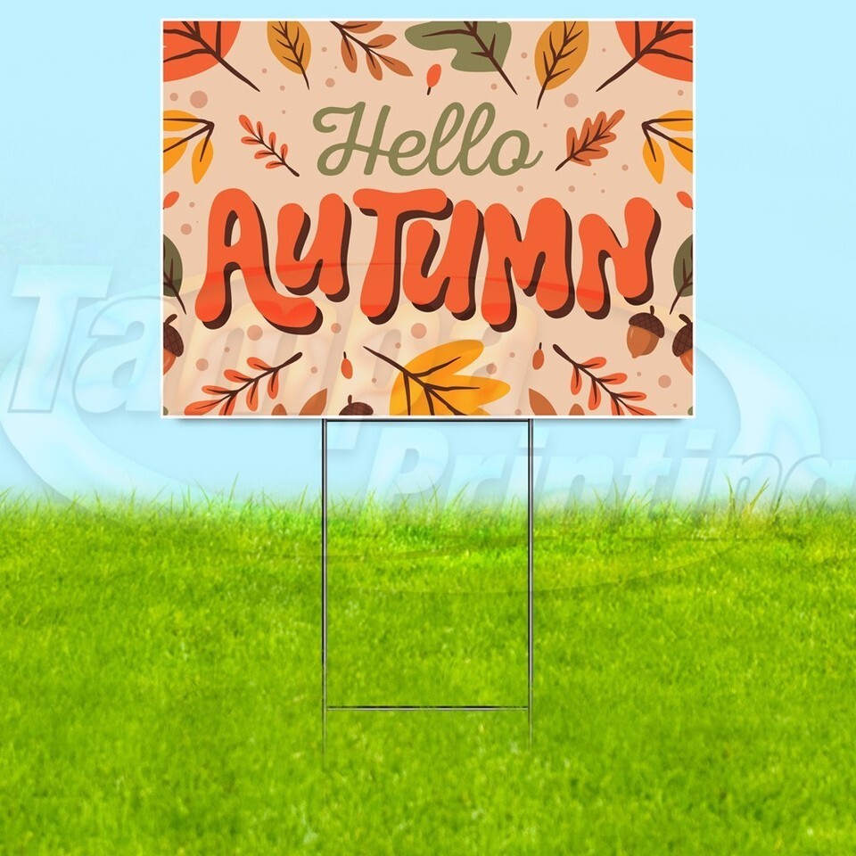 HELLO AUTUMN 18x24 Yard Sign Seasons Plastic Corrugated WITH STAKE USA YS07934
