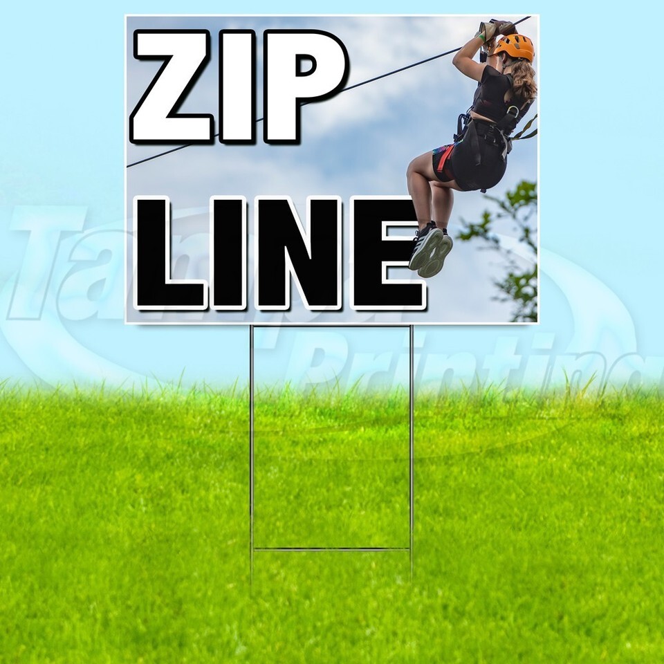 ZIP LINE 18x24 Yard Sign Family Fun Plastic Corrugated WITH STAKE USA YS07861
