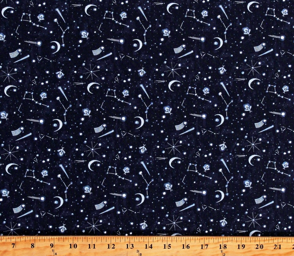 Cotton Constellations Shooting Stars Moons Navy Fabric Print by the Yard D187.14